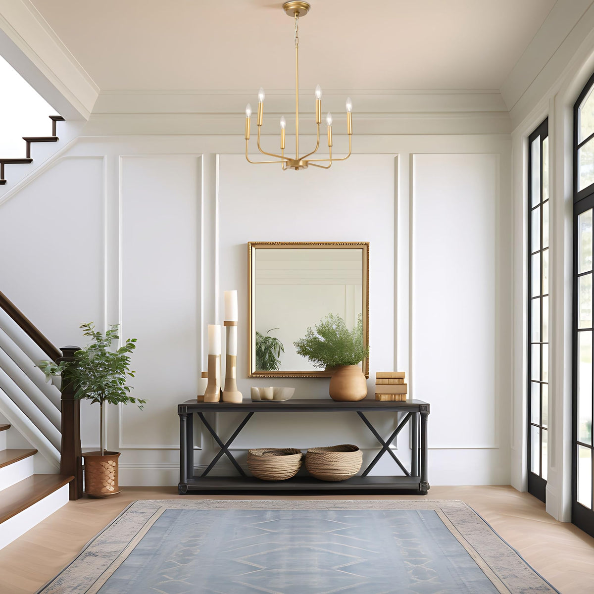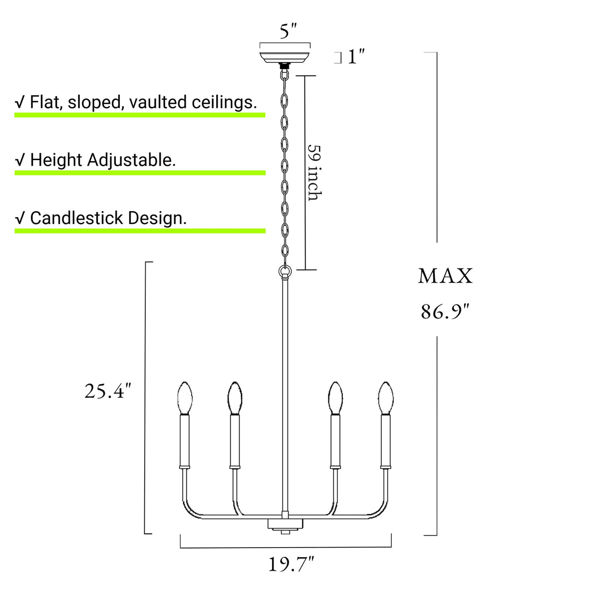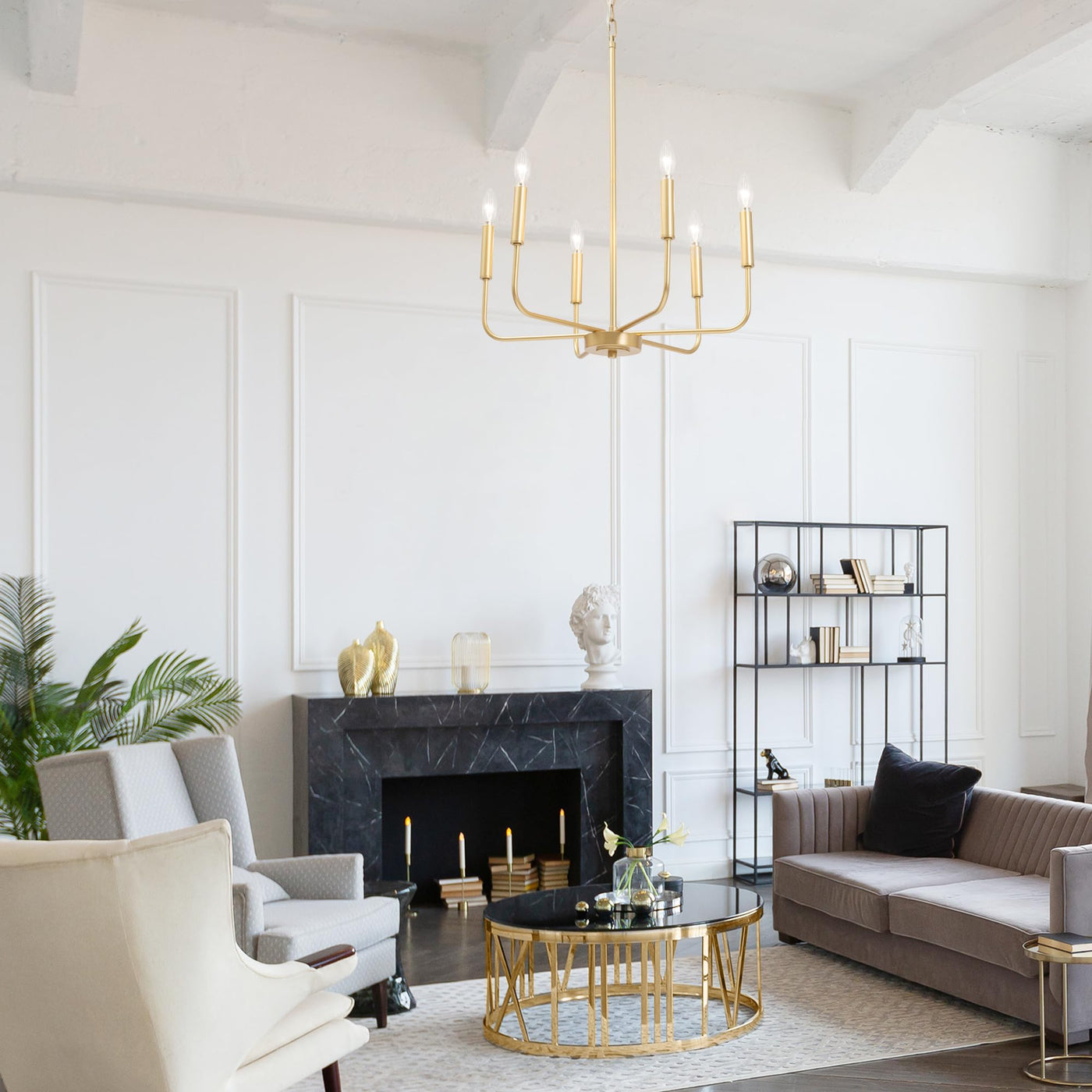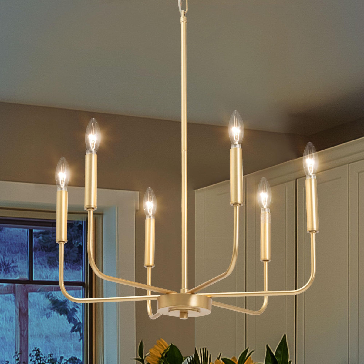 Farmhouse Style Design: This 6-Light Chandelier Showcases A Charming Farmhouse Design With A Classic Candlestick Shape. The Sleek Light Gold Finish And Elegant Lines Elevate Any Room, Making It The Perfect Addition To Your Home Decor | Perfect Size: With An Overall Size Of 19.7'' D X 25.4'' H And A Round Backplate Measuring 5'' D X 1'' H, This Gold Farmhouse Chandelier Is Compatible With Flat, Sloped, And Vaulted Ceilings, Offering Flexible Installation Options For A Variety Of Spaces | Bulb Requirement: Requires 6 X E12 Type B Max 40W Bulbs (Not Included). The Classic Chandeliers For Dining Room Are Fully Dimmable When Paired With A Dimmer Switch And Dimmable Bulbs (Both Not Included), Allowing You To Create The Perfect Ambiance In Your Space | Adjustable Height: With A 59'' Chain, This Dining Room Chandelier