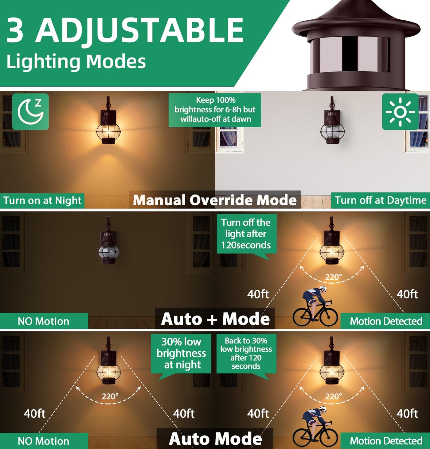 Lamomo Bronze Outdoor Light,Exterior Front Porch Lights For House,Dusk To Dawn Motion Sensor Lights,Waterproof Anti-Rust Wall Mo