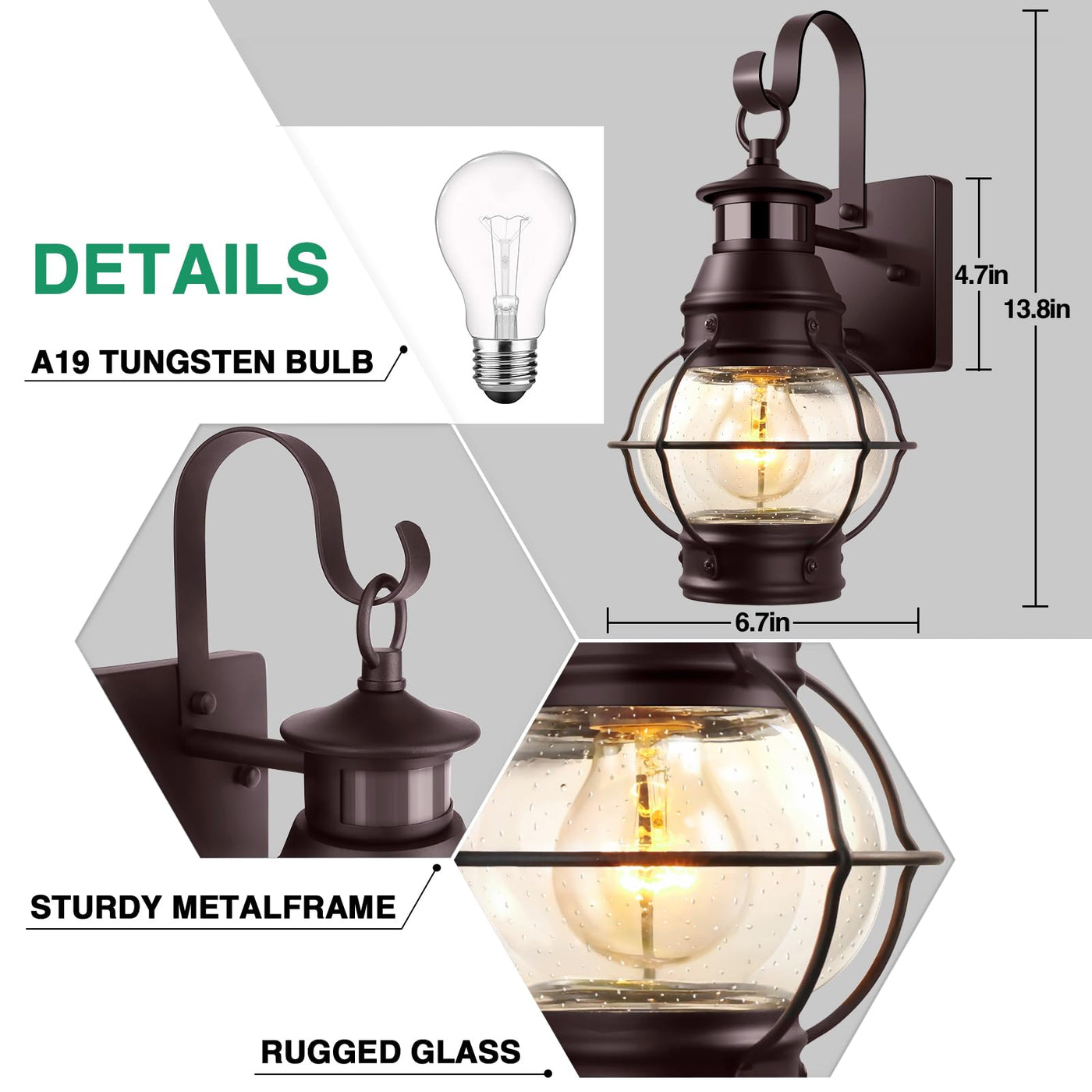 Lamomo Bronze Outdoor Light,Exterior Front Porch Lights For House,Dusk To Dawn Motion Sensor Lights,Waterproof Anti-Rust Wall Mount Lantern For Outside,Garage(No Bulb)