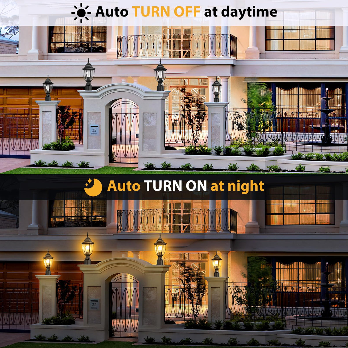 Q: How does the Dusk to Dawn sensor work on the Lamomo Post Lights?A: The Lamomo Dusk to Dawn Outdoor Post Lights feature an advanced built-in photocell sensor that automatically detects ambient light levels. This means the lights will turn off during the daytime and activate at night, providing convenient, hands-free operation.