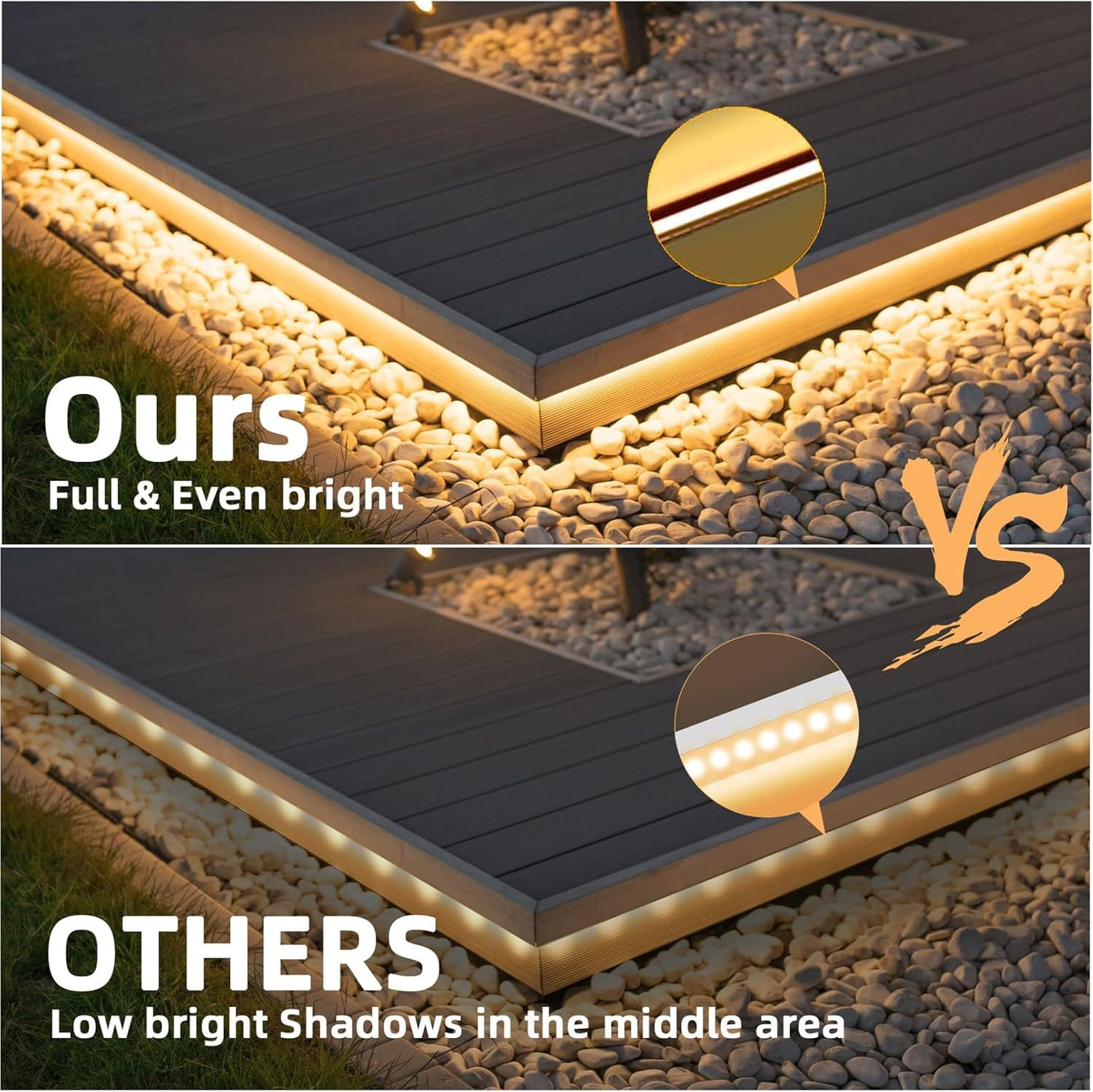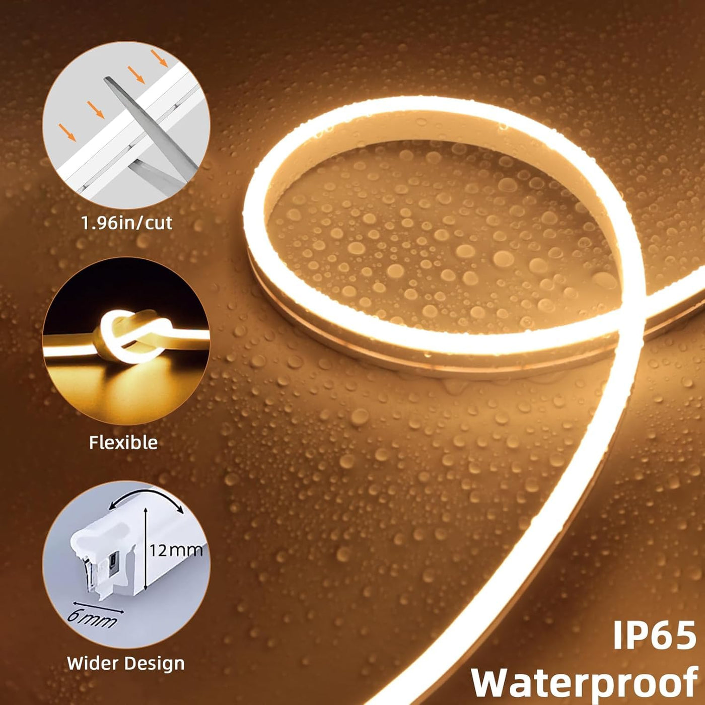 Lamomo Outdoor Neon Rope Lights, 49.2Ft Warm White Ip65 Waterproof Dimmable Led Strip Lights, 24V 3000K Silicone 1800 Leds Neon