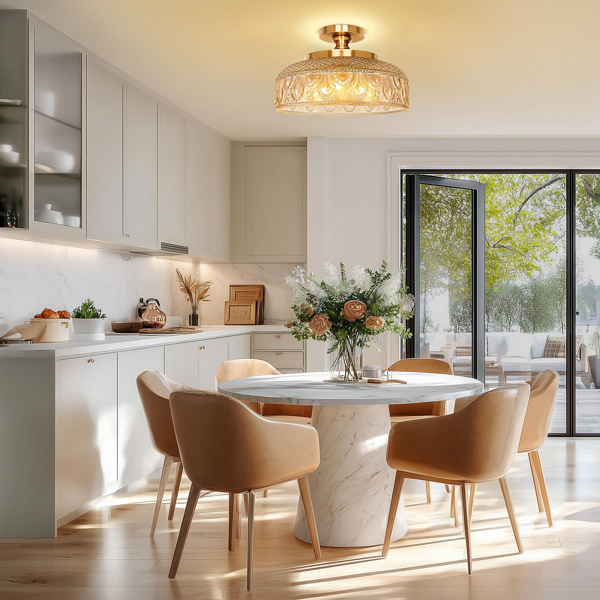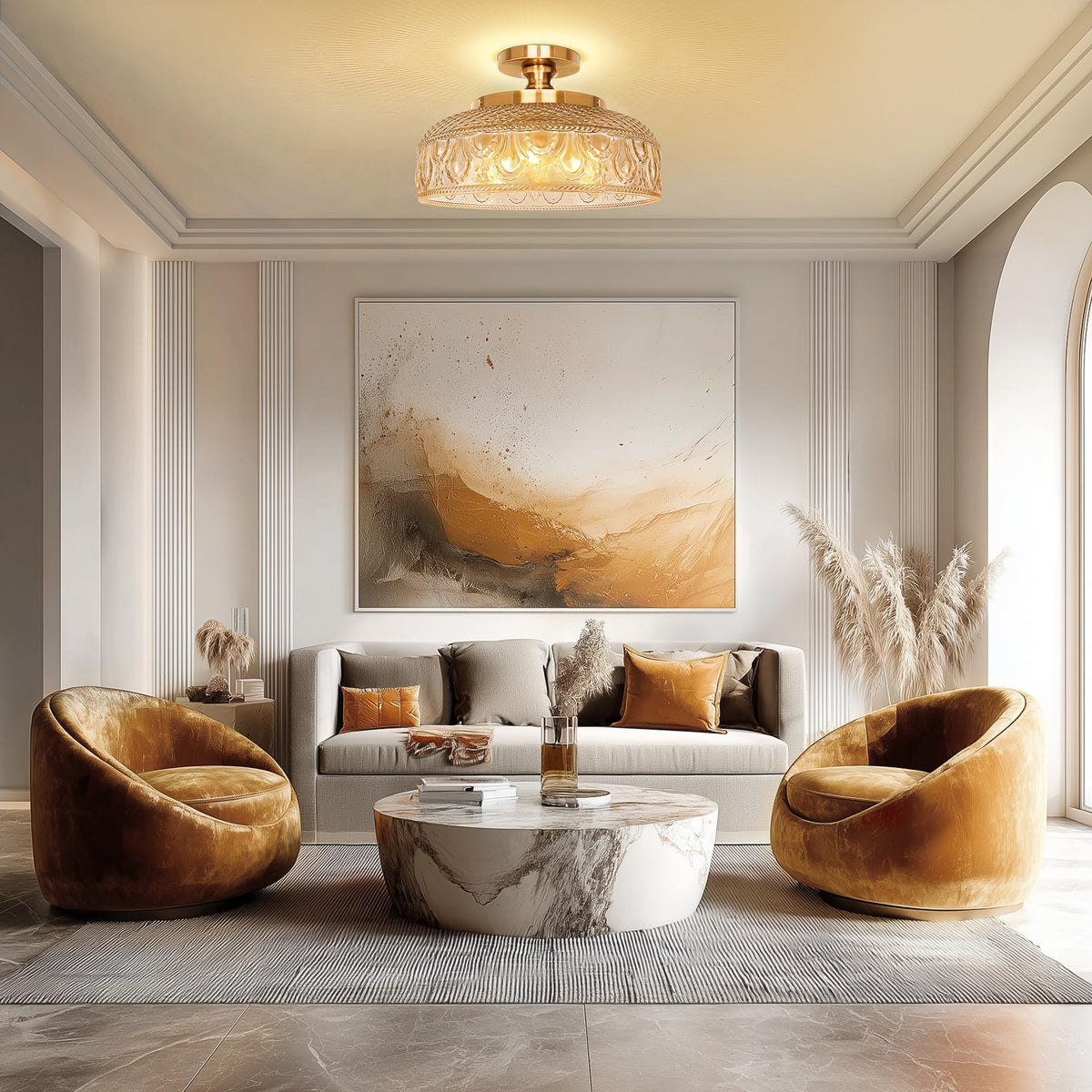 Lamomo Semi Flush Mount Ceiling Light, Upgraded Larger Hallway Light Fixture, 3-Bulb Globe Glass Close to Ceiling Scone, Amber I