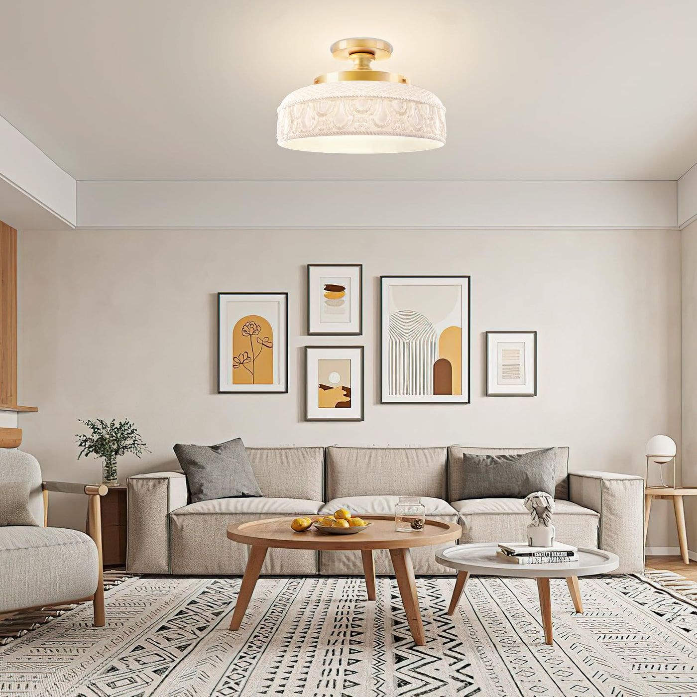 Q: Where can I install the Lamomo Semi Flush Mount Ceiling Light?A: This versatile ceiling light is perfect for a variety of indoor settings, including living rooms, hallways, bedrooms, kitchens, and even commercial spaces like cafes or hotels. Its elegant design makes it suitable for both residential and professional environments.