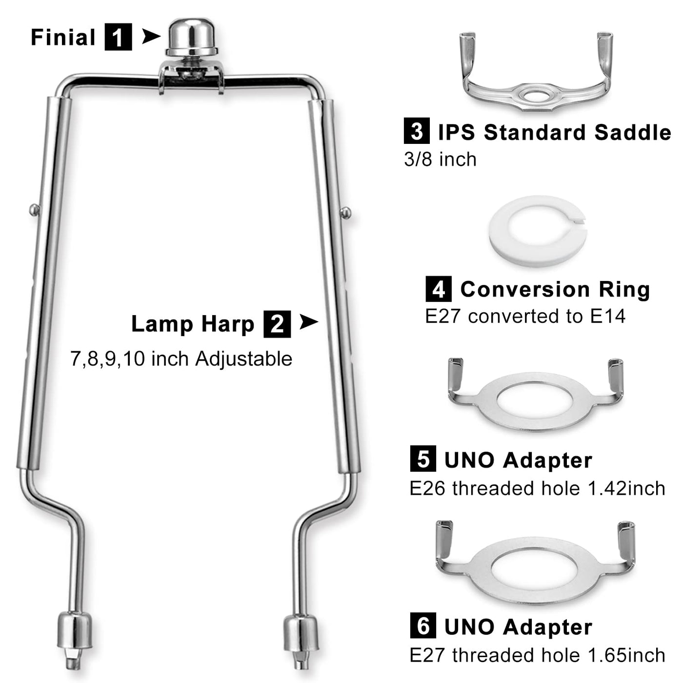 Lamp Harp Kit, 7 8 9 10 Inch Adjustable Lamp Shade Holder, Hardware Parts Included Harp Frame And Finials, Standard Saddle, E14