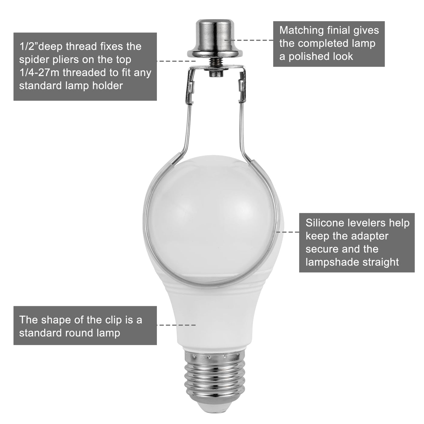 Lamp Shade Holder,Lamp Shade Light Bulb Clip Adapter,Clip On Lampshade Adapter Includes Finial And Lampshade Levellers,Spring Clip For Light Bulb (Nickel)