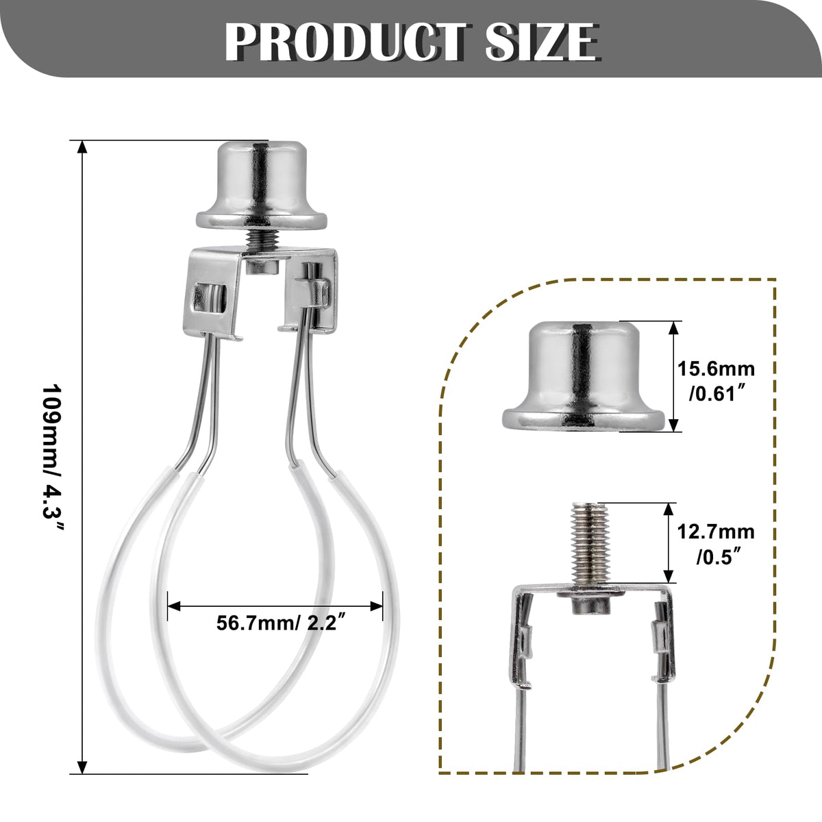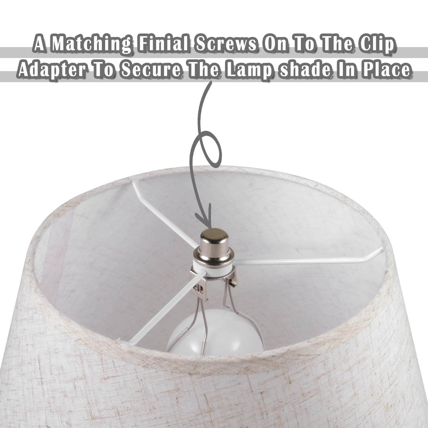 PACKAGE CONTENTS: -1 X Nickel Lamp Shade Clip -2 X Silicone tube on each round wire(fitted) -1 X Finial in nickel finish(screwed-in)