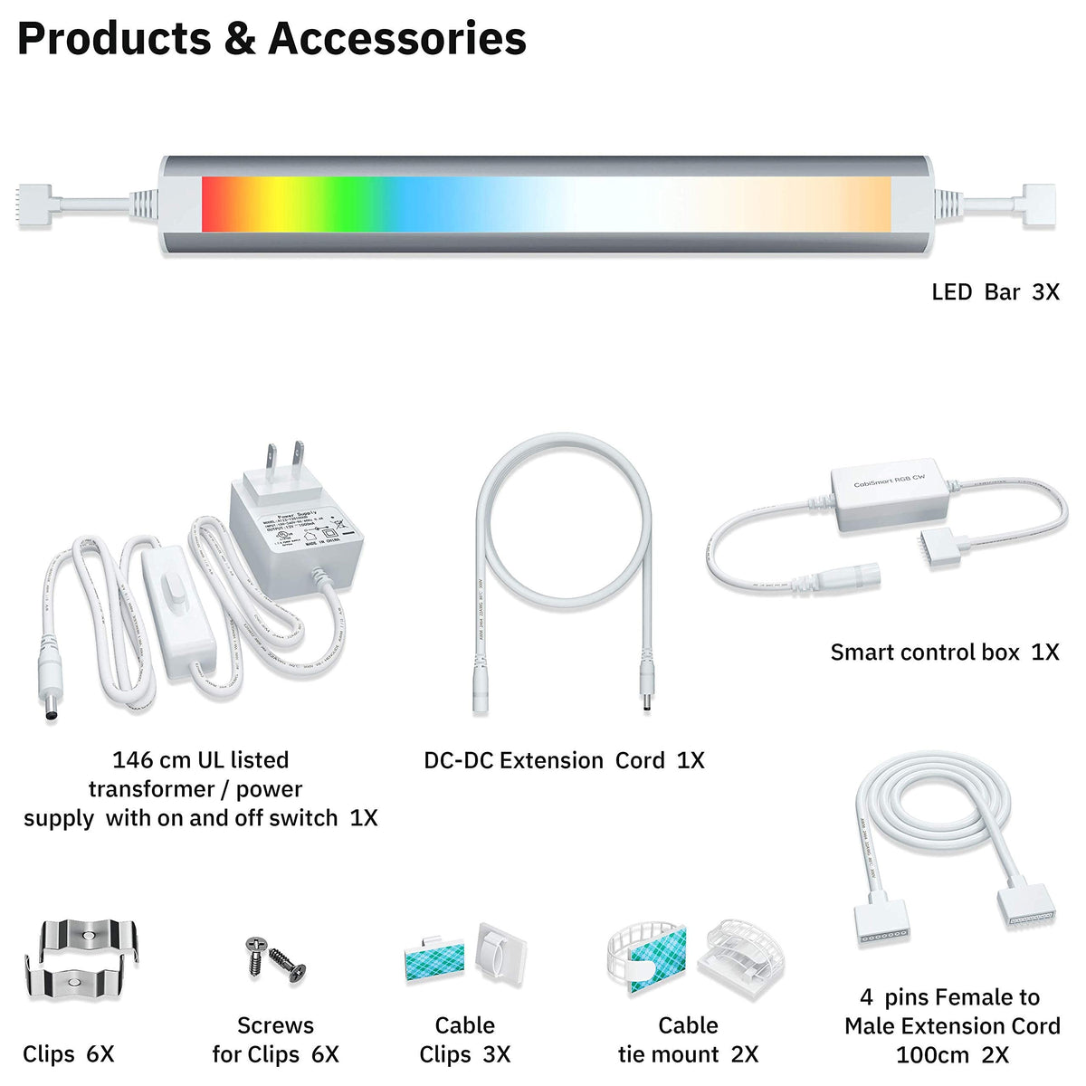 - **Easy Installation**: Designed for convenience, these lights can be mounted using adhesive tape or screws and clips. The strip light dimensions are L 12" x W 1.5", and they are linkable and expandable with 7-pin extension cords or Y connectors for customized setups.