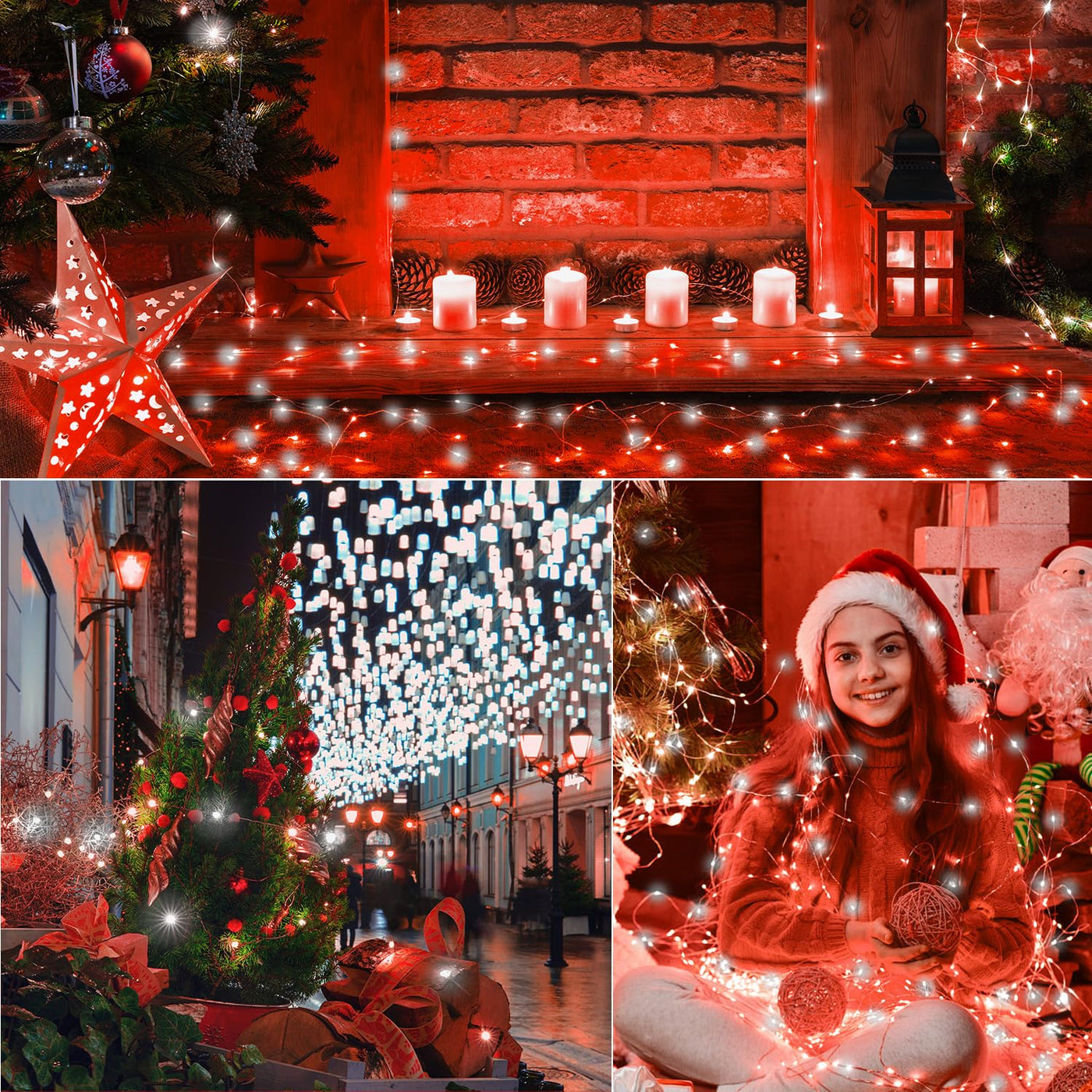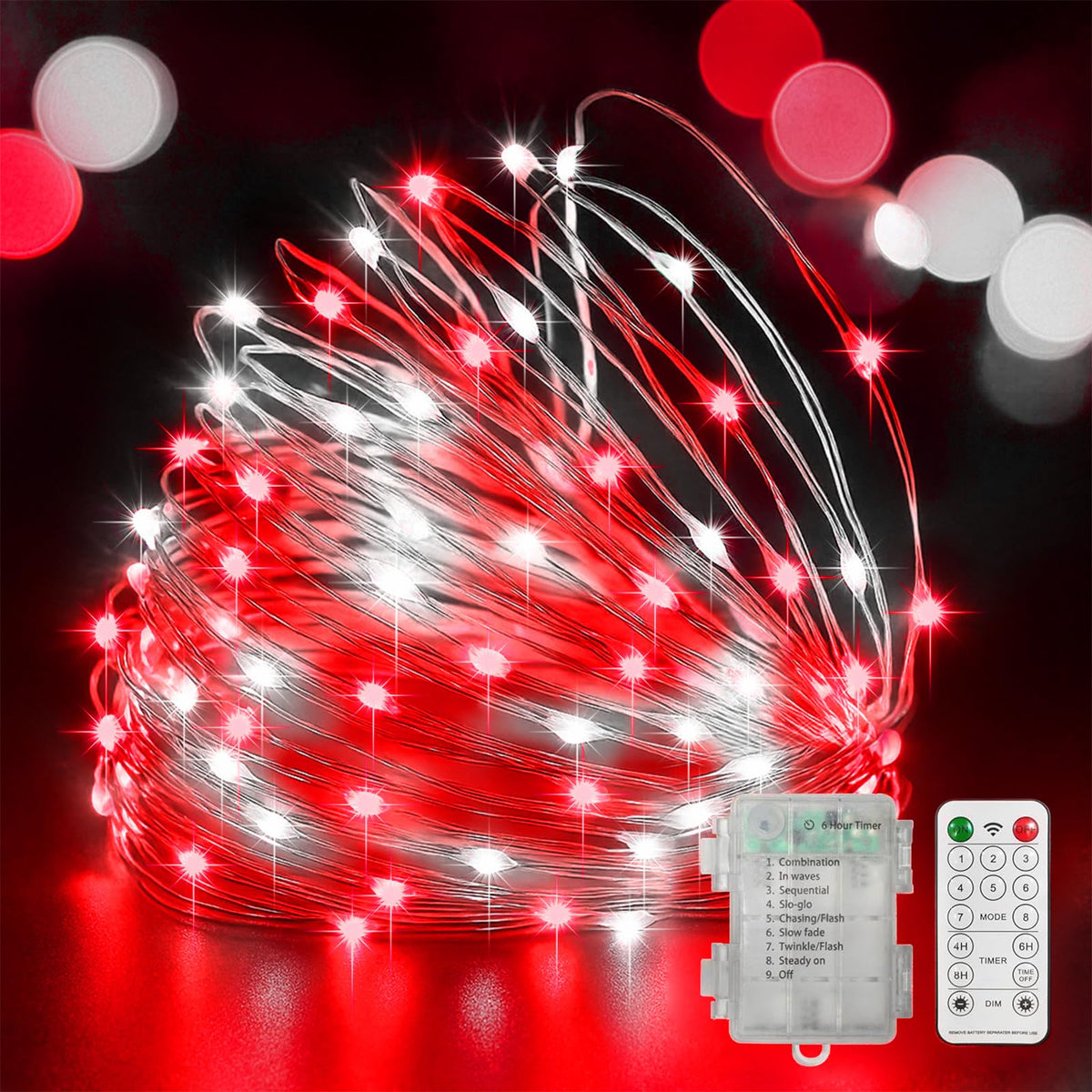LAMPHOME 100LED String Light, Fairy Lights Battery Operated, Remote Control Timer Twinkle String Lights 8 Modes Firefly Lights for Garden Party Indoor Decor (White+Red)