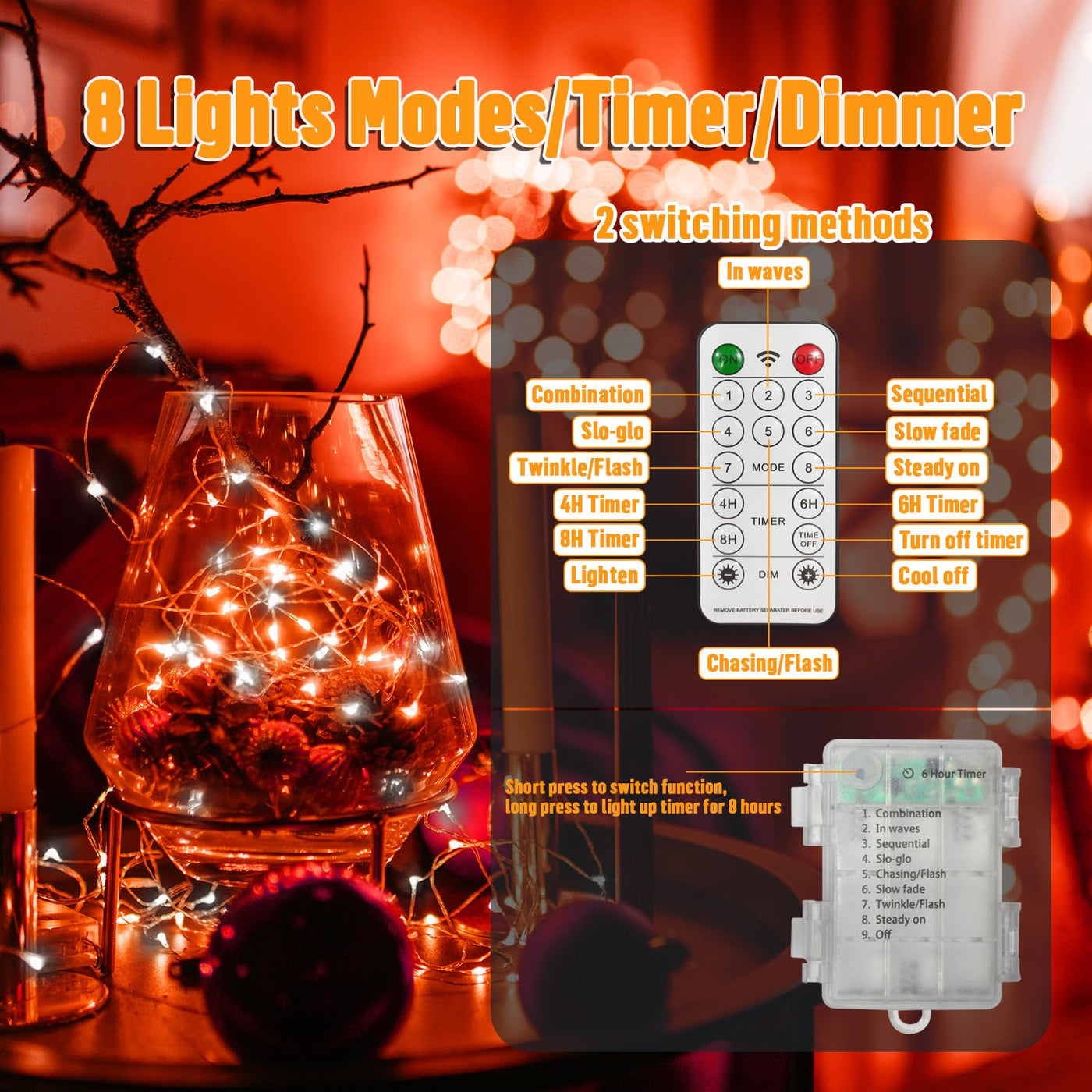 LAMPHOME 100LED String Light, Fairy Lights Battery Operated, Remote Control Timer Twinkle String Lights 8 Modes Firefly Lights f