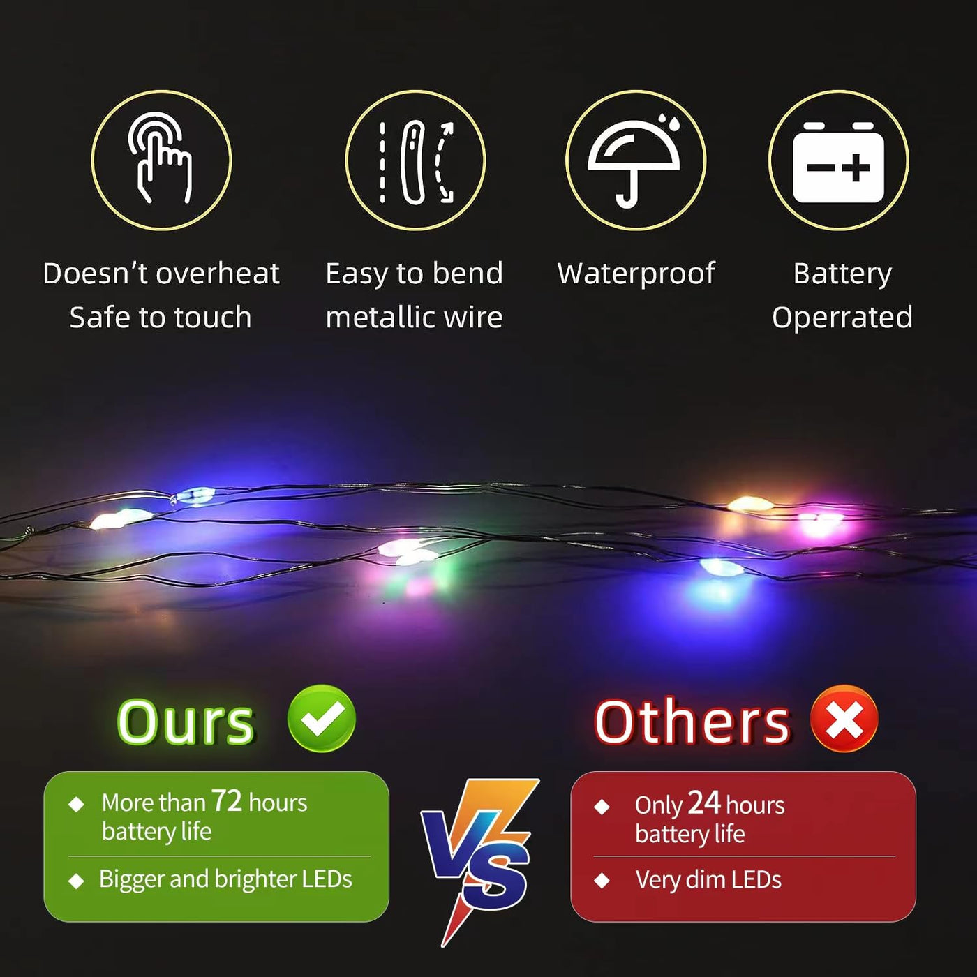 Q: How long do the batteries last in the LAMPHOME fairy lights?A: The LAMPHOME fairy lights come pre-installed with high-quality batteries that offer up to 72 hours of continuous use. Additionally, the package includes extra batteries, totaling 50 CR2032 batteries, ensuring you can enjoy your lights for an extended period.