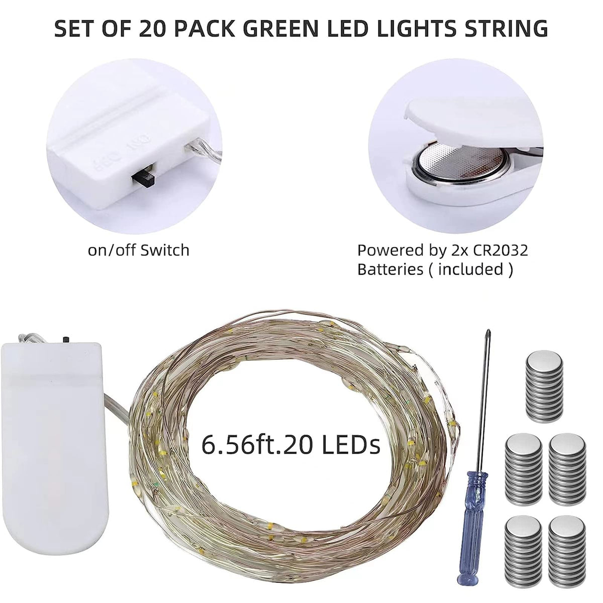 Lamphome 20 Pack Fairy Lights Battery Operated String Lights, 20 Led On 6.6Ft Silvery Copper Wire, 20Led Copper Lights,Battery Case,Multi(20 Sets - Each 20 Count Led)