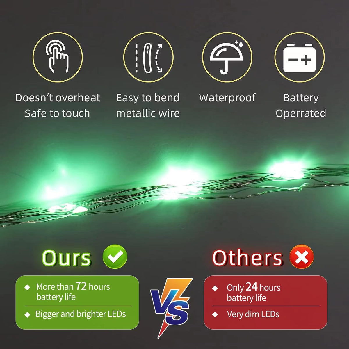 Q: Are these fairy lights waterproof?A: Yes, the fairy lights are IP65 waterproof, making them suitable for both indoor and outdoor use. However, please note that while the string lights are waterproof, the battery pack is not.