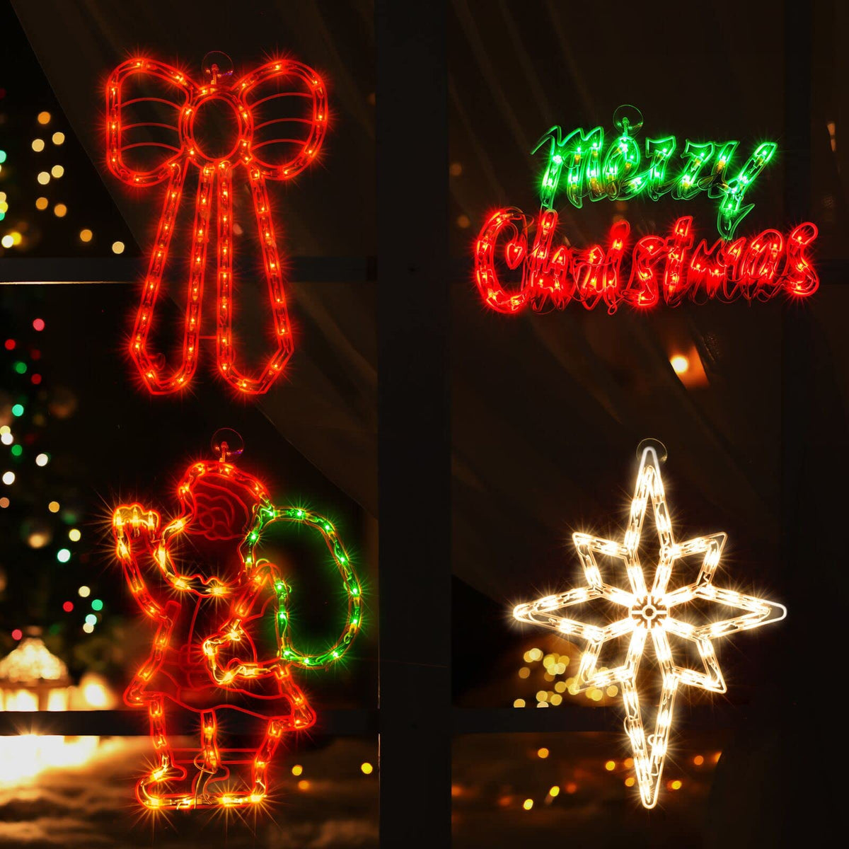 LAMPHOME 4 Pack Lighted Merry Christmas, Bethlehem Star ,Bow,Santa Christmas Window Silhouette Lights Decorations for Christmas,Party,Home,Patio Lawn,Garden.