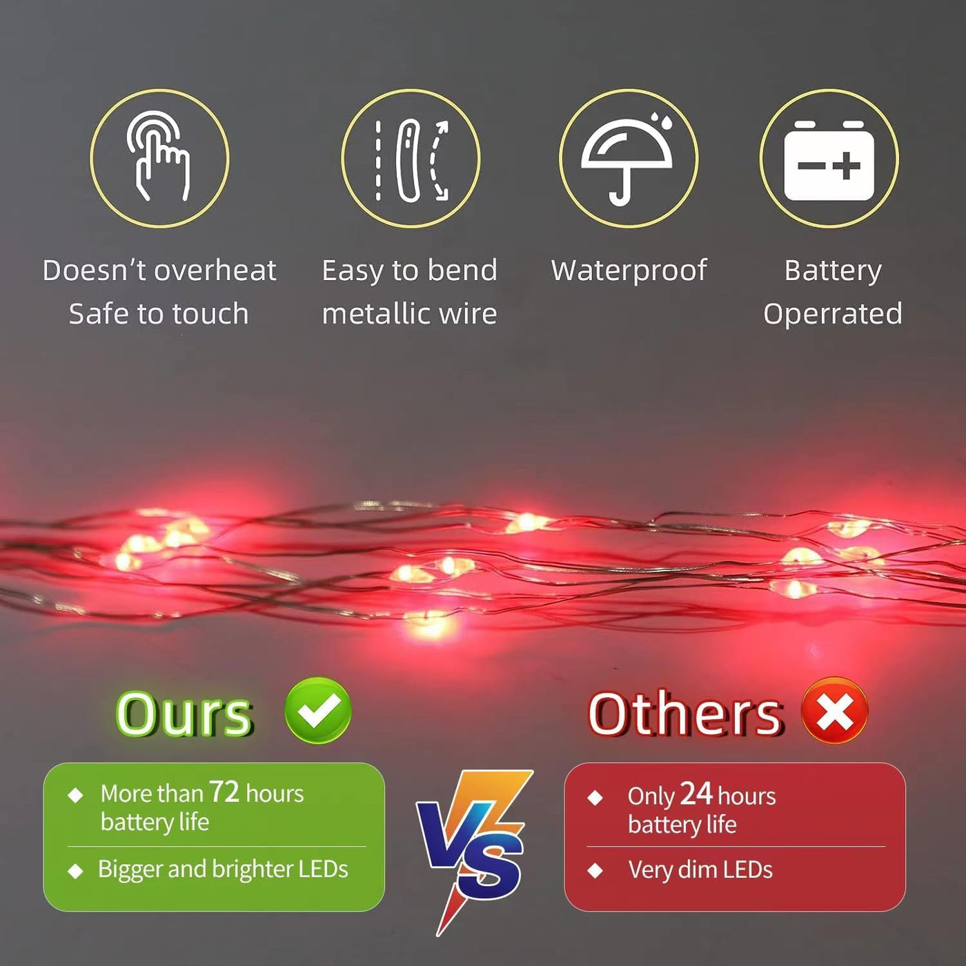 Q: Can these fairy lights be used outdoors?A: Yes, these fairy lights feature a waterproof design, allowing you to use them both indoors and outdoors without worrying about humidity or weather damage.