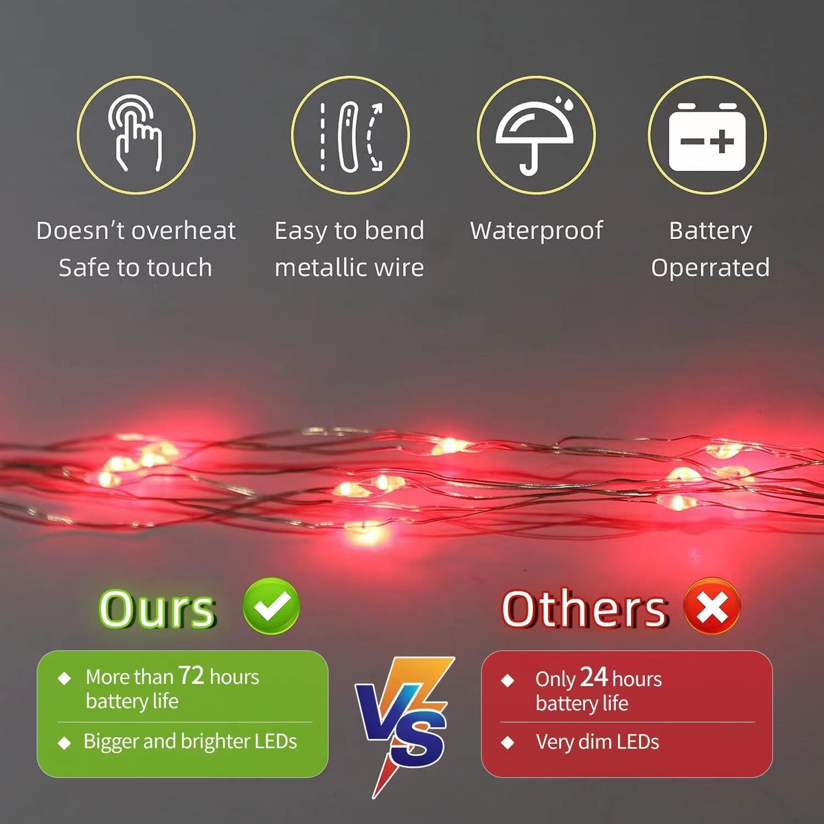 Lamphome 6 Pack Fairy Lights Battery Operated String Lights 6.6Ft 20 Led Mason Jar Lights Waterproof Silver Wire Light Fireflies Diy Party Wedding Christmas Decoration(6 Pack,Red)