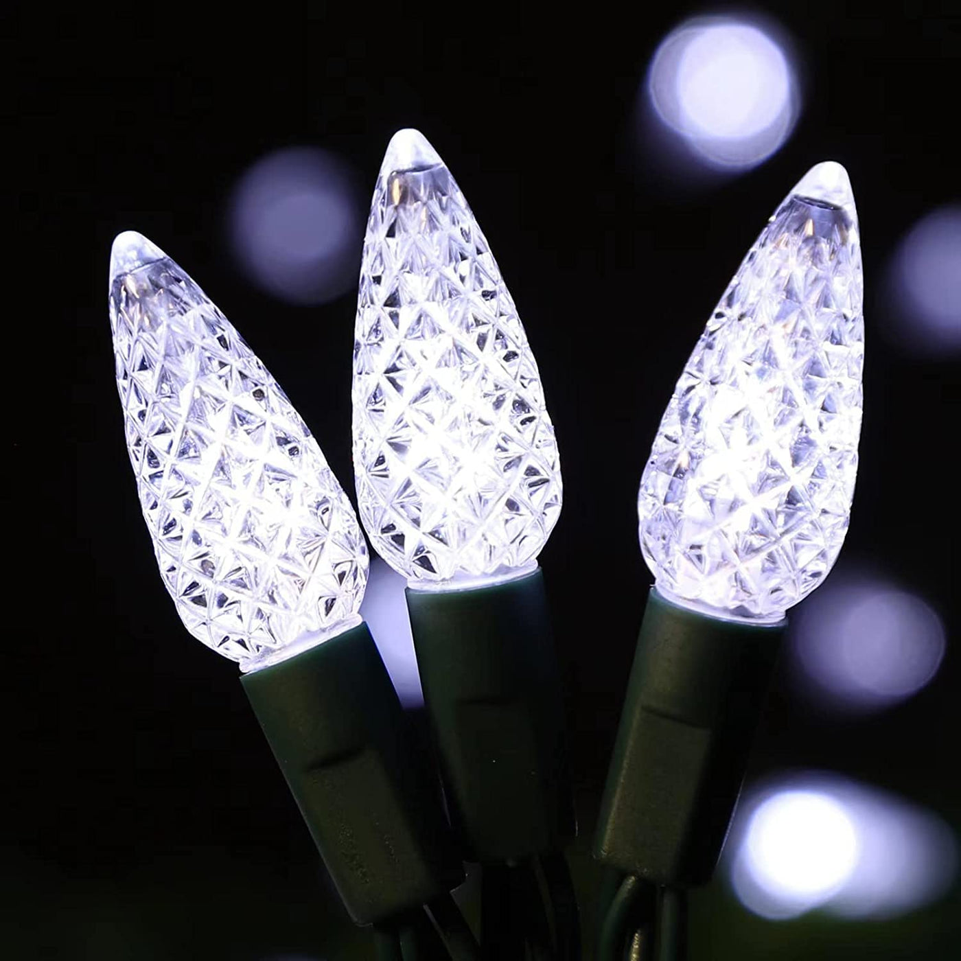 Q: What color are the LED lights?A: The LED lights in the LAMPHOME C6 Christmas lights emit a warm white color, creating a cozy and inviting atmosphere for your holiday decorations.