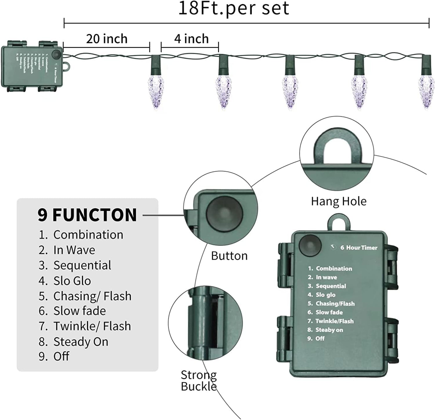 Q: Do these lights have a timer function?A: Yes, the LAMPHOME C6 Christmas lights feature an automatic timer function, which allows for six hours of illumination followed by eighteen hours of being turned off in a daily cycle.