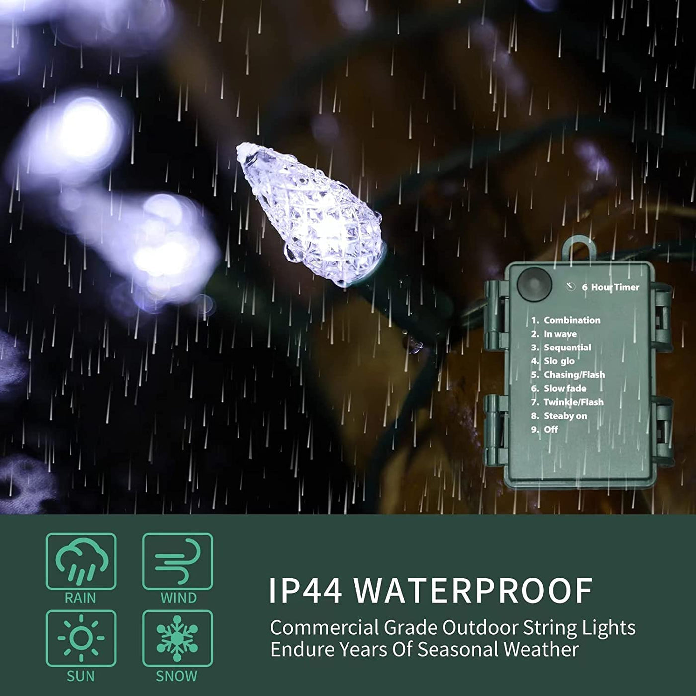 Q: Can these lights be used for outdoor decorations?A: Absolutely, the LAMPHOME C6 lights are suitable for outdoor decorations. Their waterproof design ensures durability in various weather conditions, making them ideal for outdoor Christmas displays.
