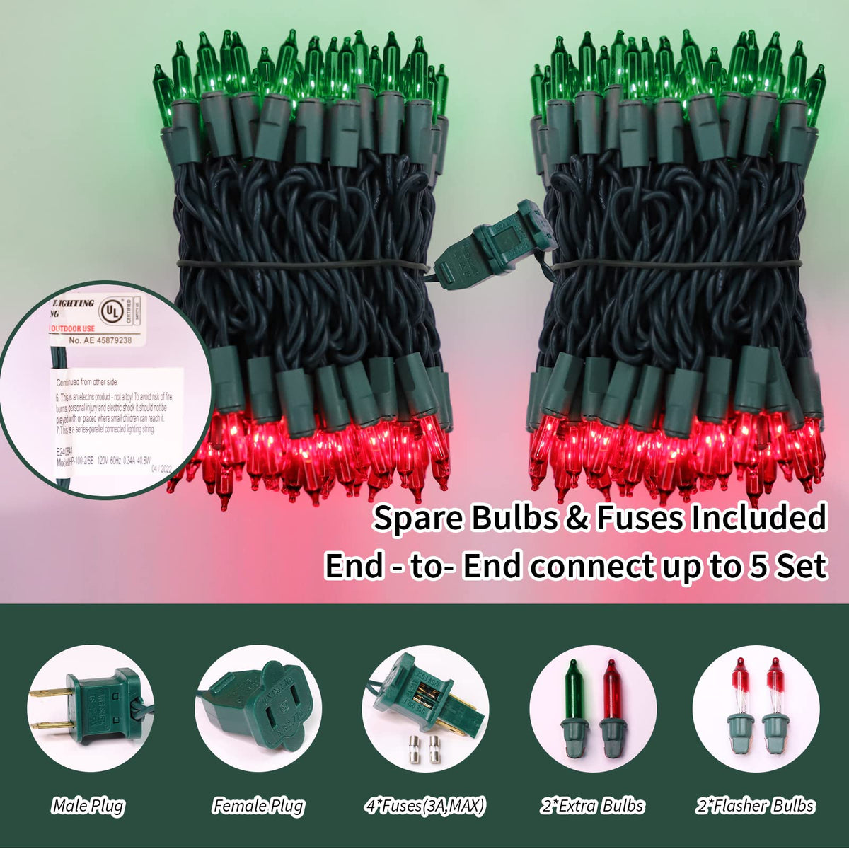 LAMPHOME Super-Bright Extendable Green Christmas Lights Decoration 100 Lights 19.6ft UL Certified Mini Bulb String Lights for Outdoor Christmas Tree Garden Party Patio Wedding Garland Decor(Red+Green)