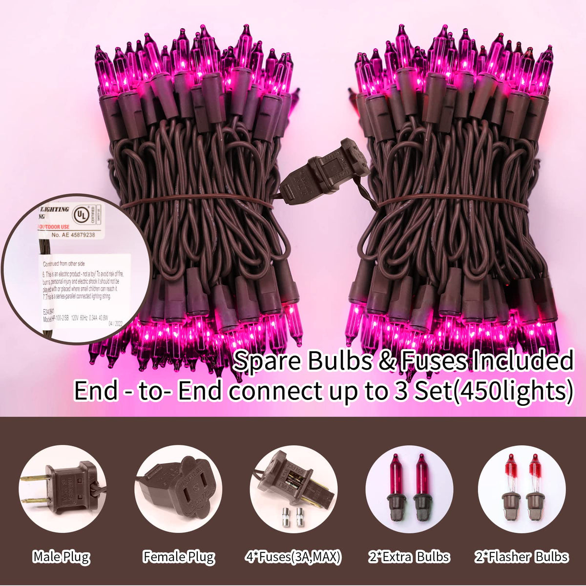 Lamphome Super-Bright Extendable Purple Halloween Lights Decoration 300Lights 63.8Ft(2Pk Of 150L) Ul Certified Mini Bulb String Light Set For Outdoor Halloween Home Christmas Tree Garden Holiday Decor
