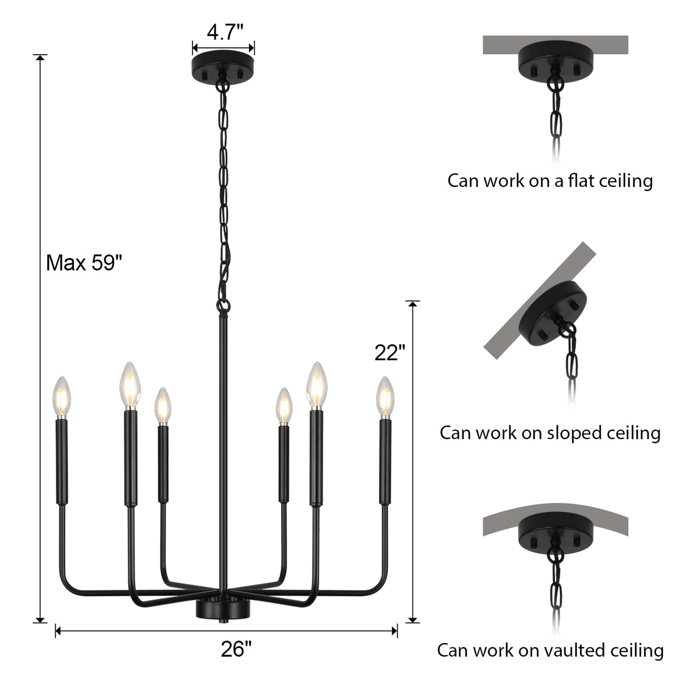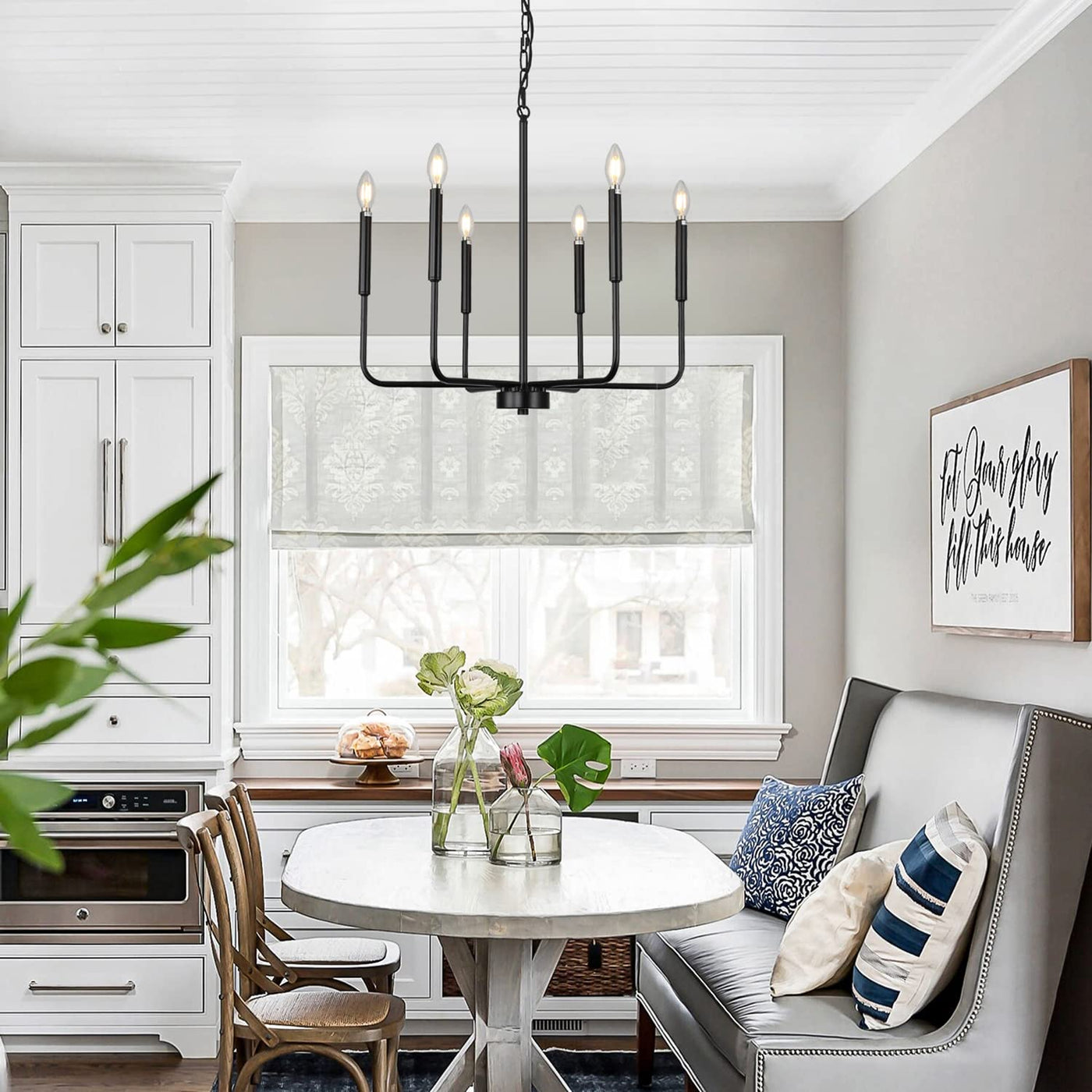 Lampkeduo Black 6-Light Chandelier - Modern Farmhouse Candle Hanging Light Fixture For Dining Room