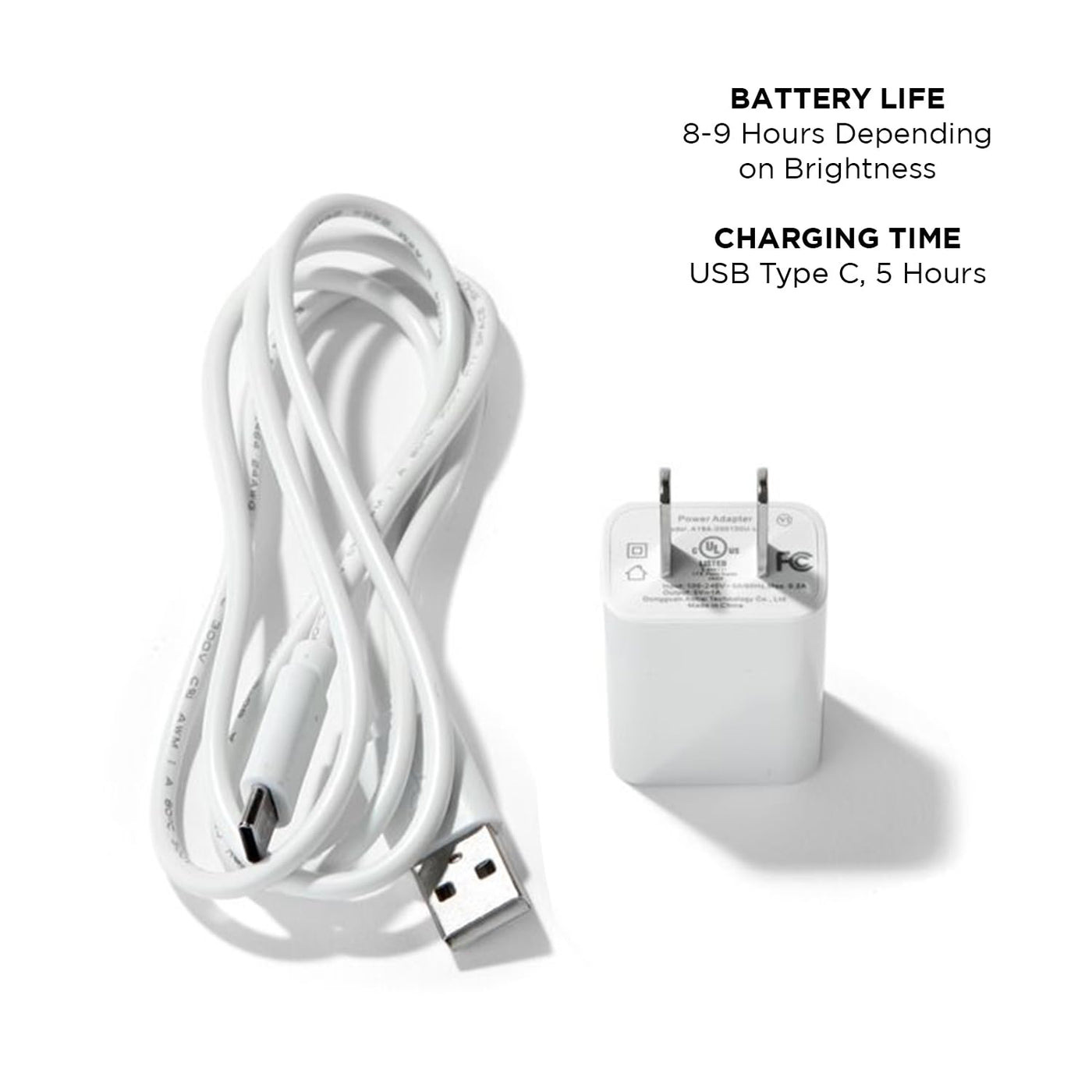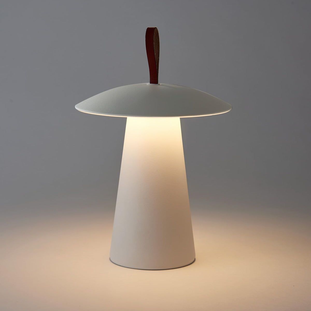 Q: What materials are used in the construction of this table lamp?A: The LampLust cordless table lamp is made from durable plastic, featuring a powder-coated matte white finish and a rich brown leather top handle for easy carrying.