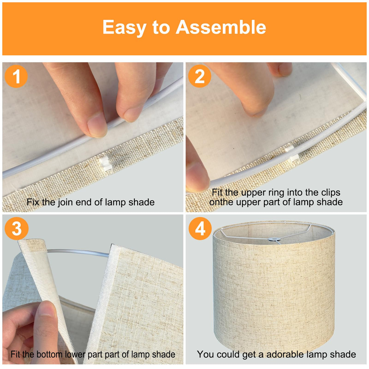 Simple Assembly Required: Designed for convenience, these lamp shades come rolled up to prevent damage during transit. Assembly is quick and easy; simply fit the shade around the metal rings and secure it with clips within a minute.