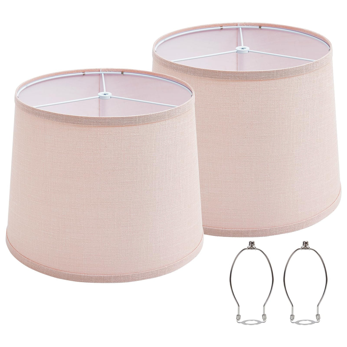 Q: What are the dimensions of the lampshades in this set?A: The lampshades in this set measure 12.7 inches in diameter at the top and bottom, with a height of 10 inches, making them suitable for most table and floor lamps.