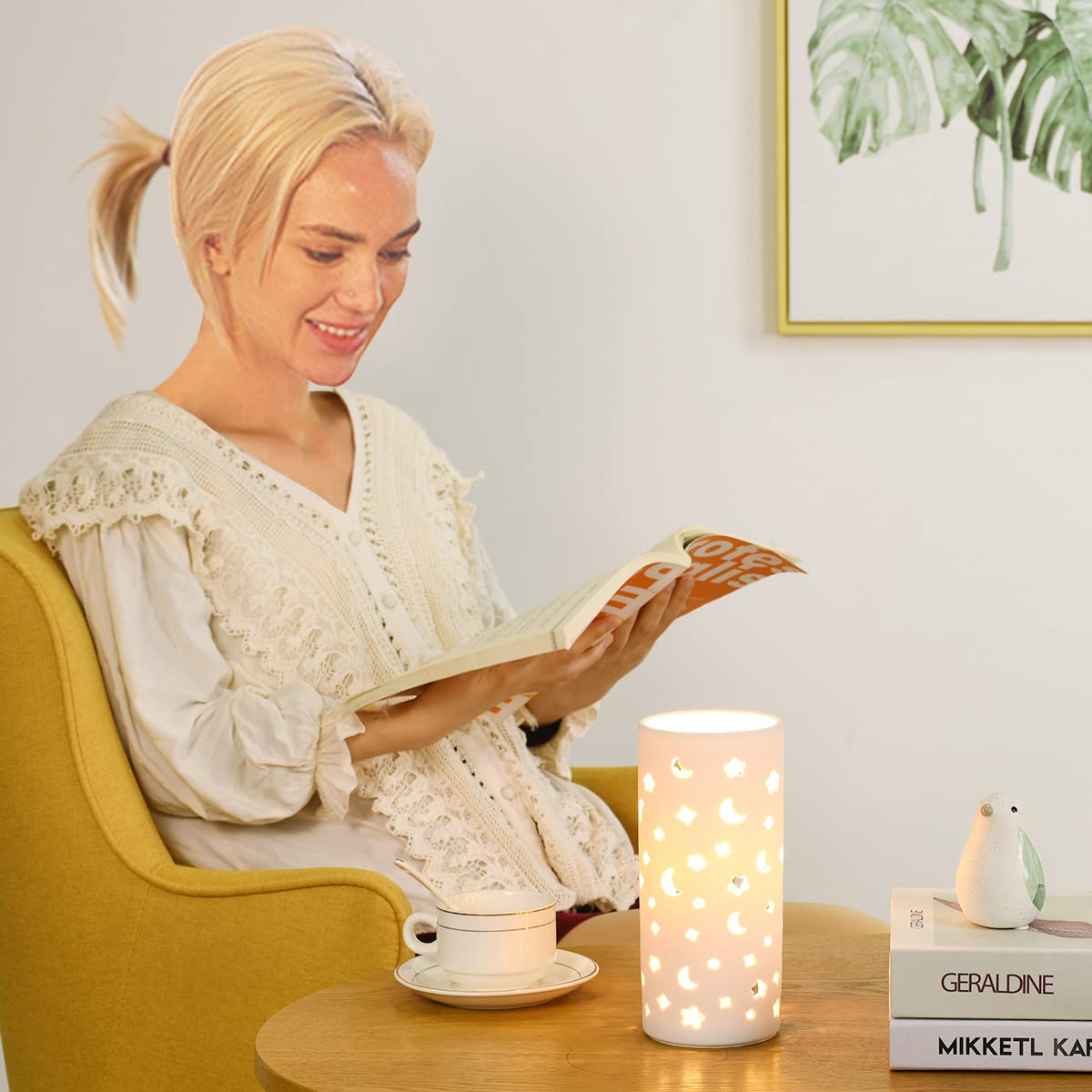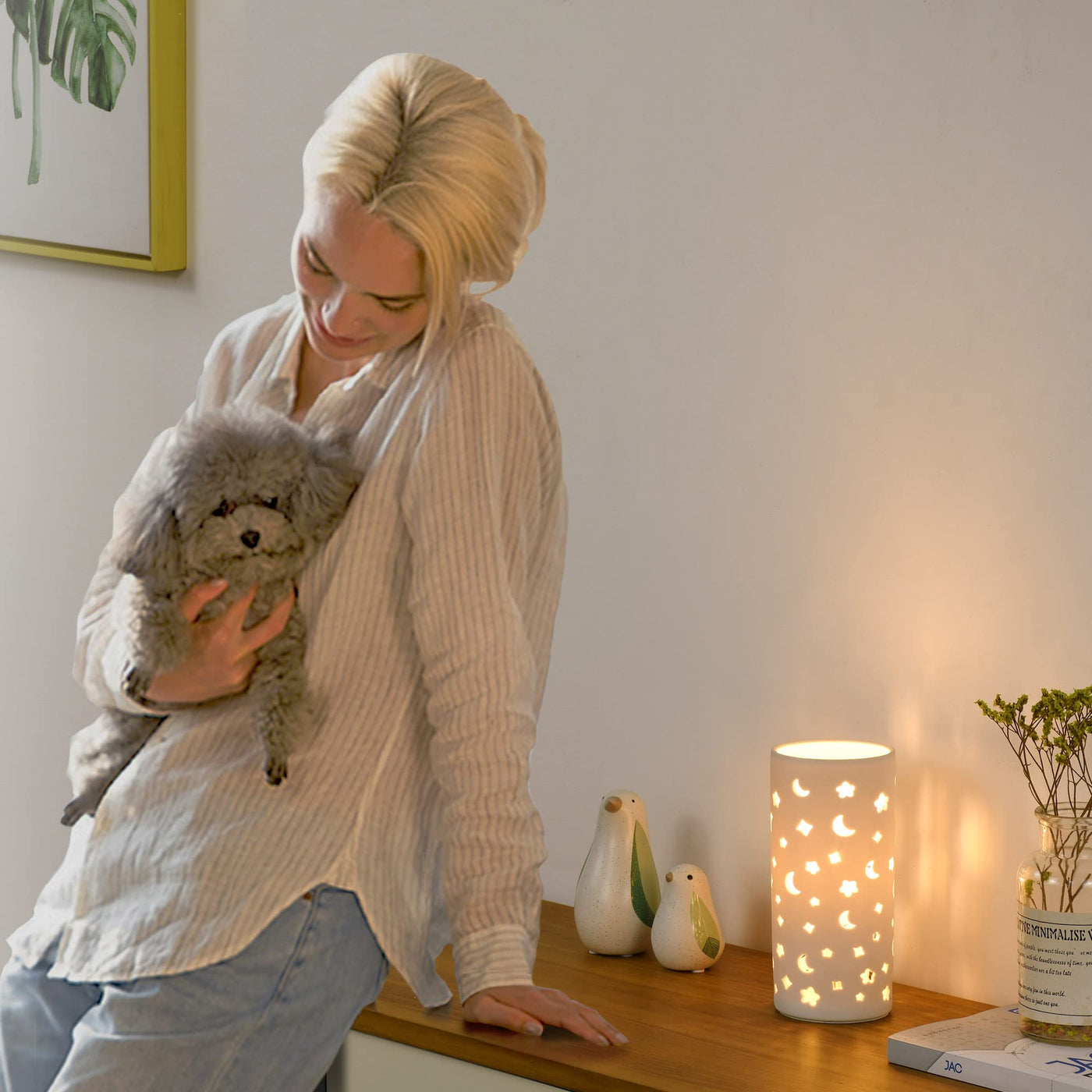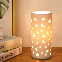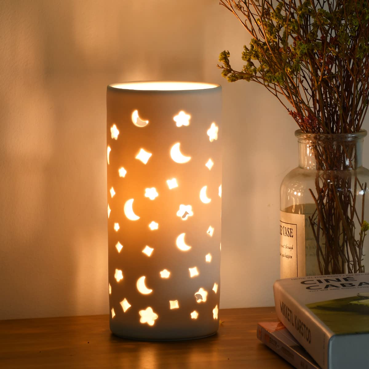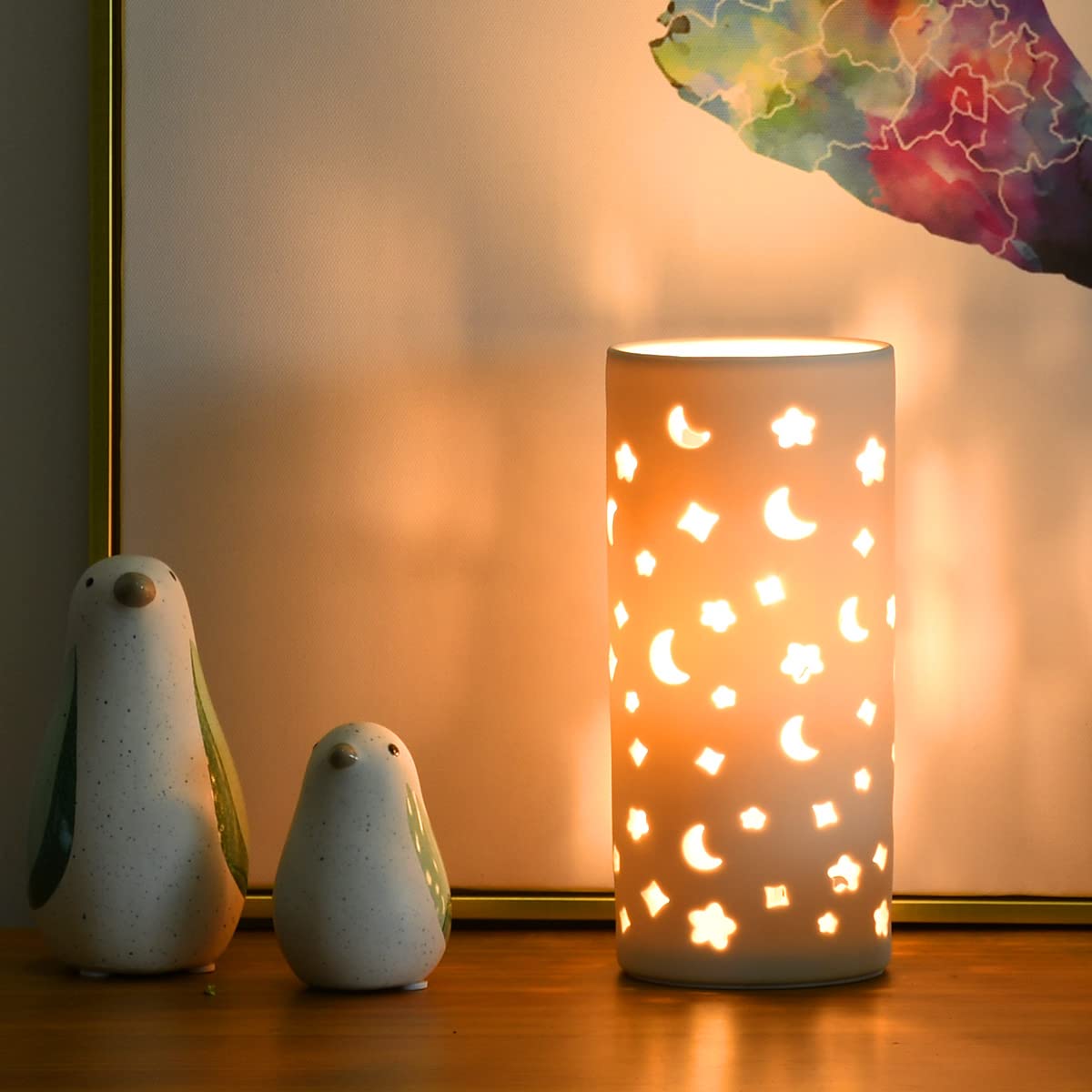 Lampwell Dana Small Table Lamp For Living Room As Bedside Table Lamp For Bedroom,Modern Ceramic Table Lamp,Kids Table Lamp,Night Table Lamp,F3.54 H7.87In,Bulb Excluded,White Table Lamp With Carving Moon And Star Patterns
