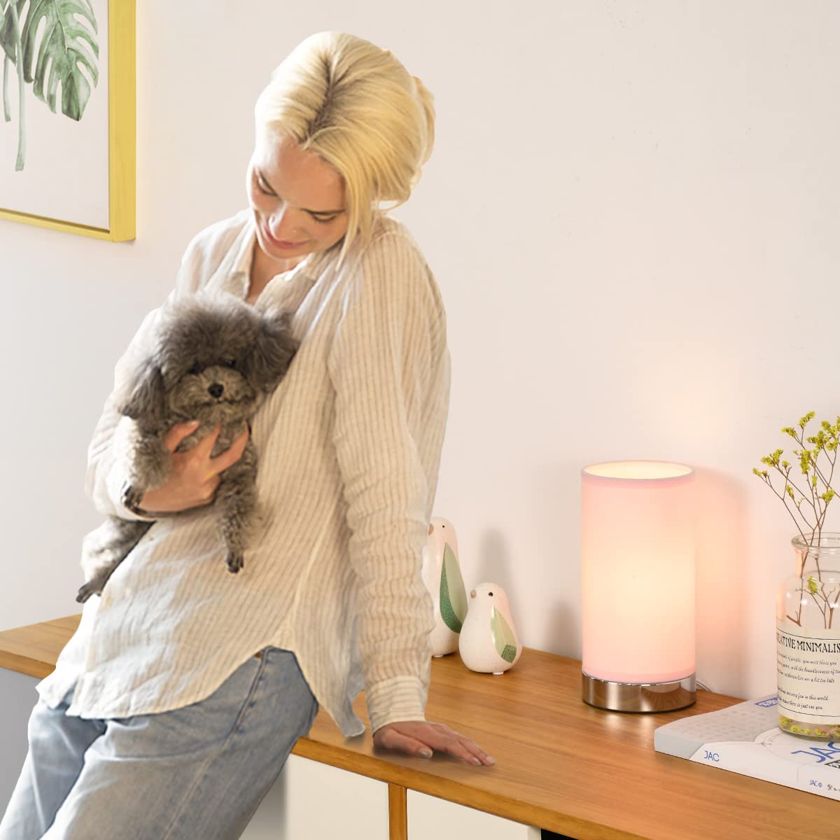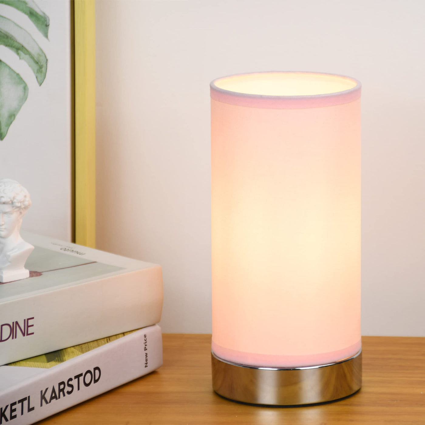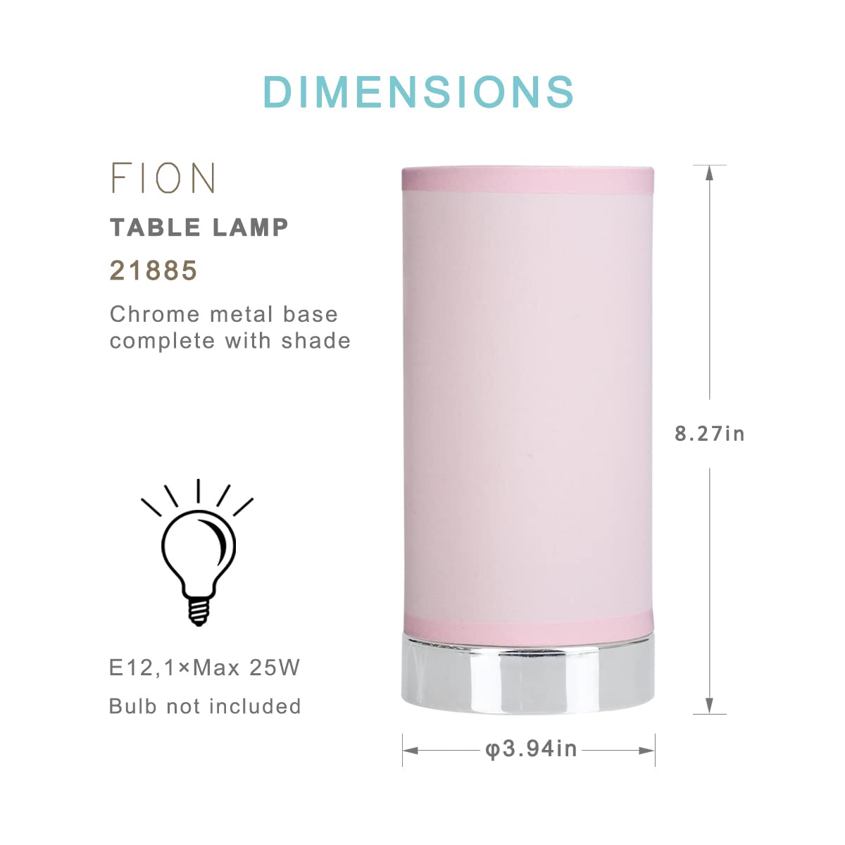Lampwell Fion Pink Small Table Lamp - Modern Bedroom & Kids Night Light, Metal & Fabric, Bulb Excluded