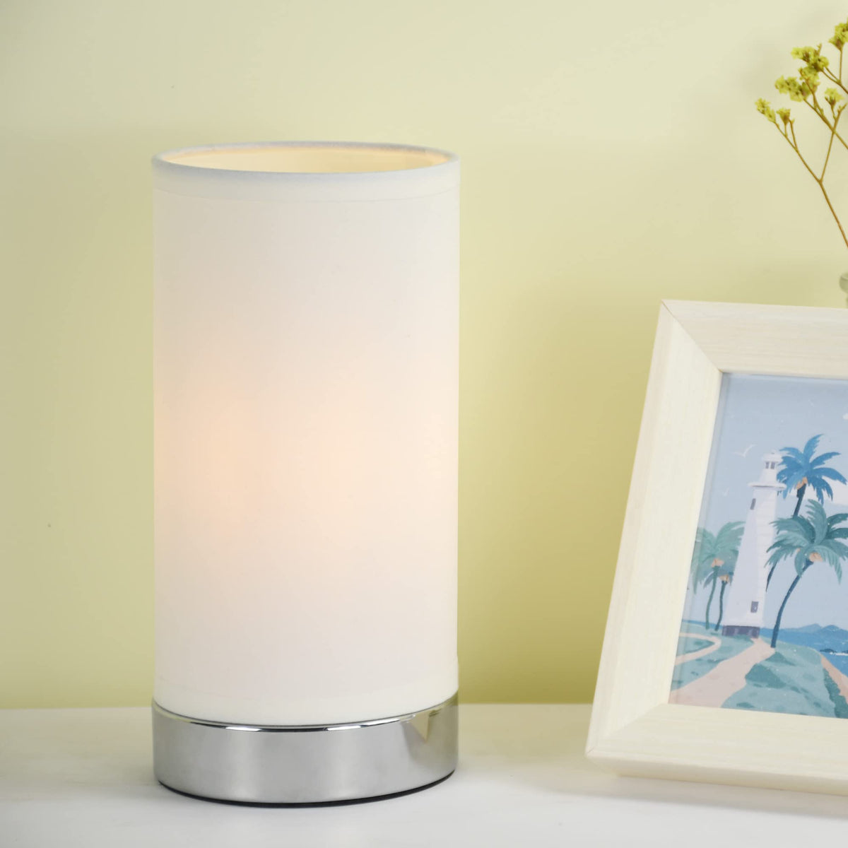 - **Stylish Design**: Featuring a sleek chrome base paired with a fabric lampshade, this lamp embodies simplicity and elegance, making it a stylish accent for any room.