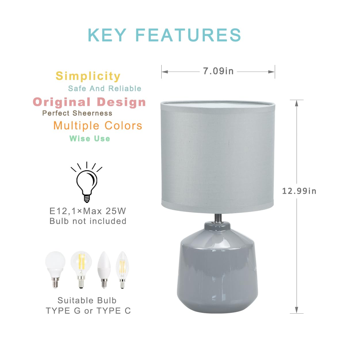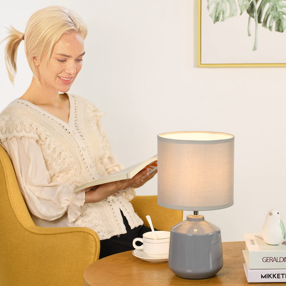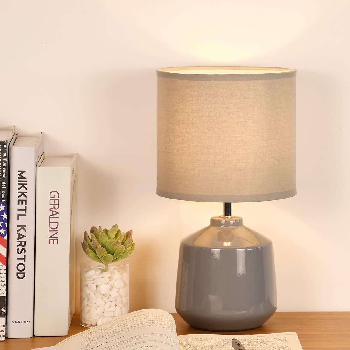 Lampwell Lena Small Table Lamp For Living Room As Bedside Table Lamp For Bedroom,Modern Ceramic Table Lamp,Kids Table Lamp,Night Table Lamp,F7.09 H12.99In,Bulb Excluded, Grey Table Lamp