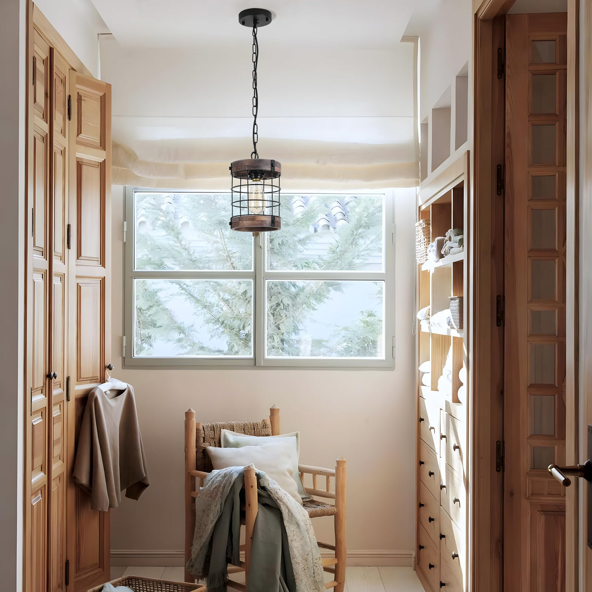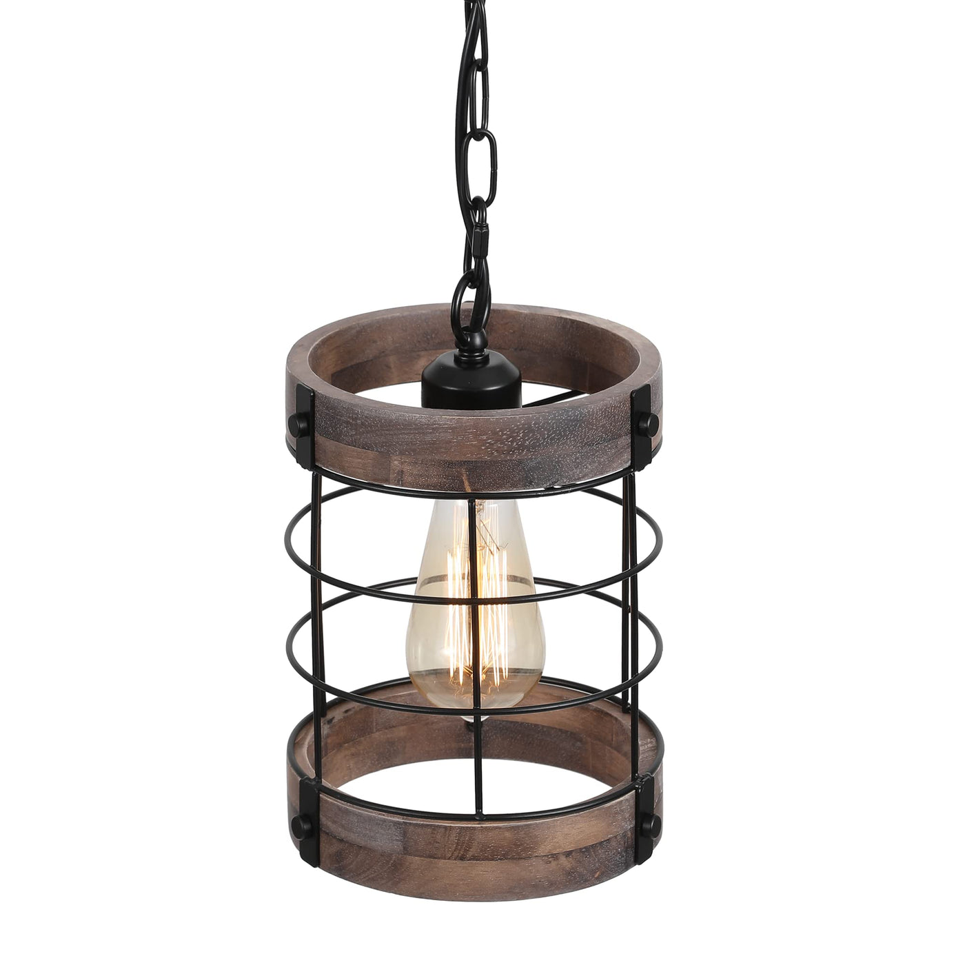 Lamqee 1-Lights Rustic Farmhouse Pendant Light Fixtures For Kitchen Island Wood Hanging Ceiling Lights Dining Room Over Table Wo