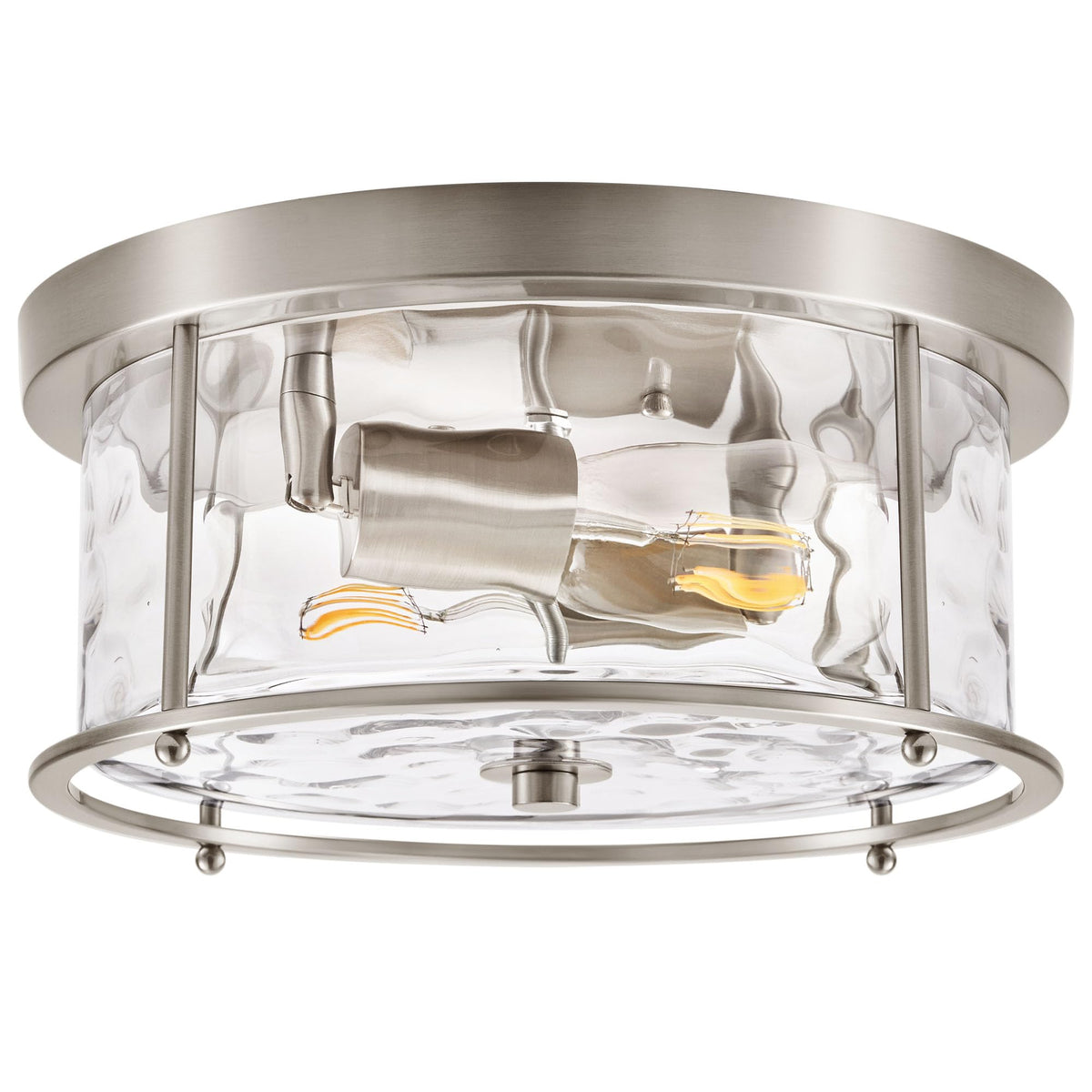 LamQee Flush Mount Ceiling Light, 2-Lights, Hammered Glass, Brushed Nickel, Model 06FTL0284ANK, Industrial Farmhouse Style