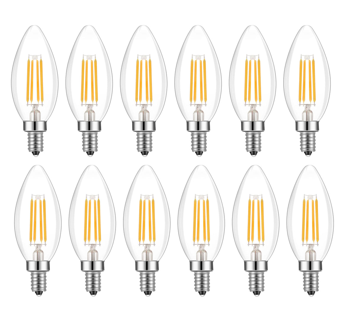 Lamsky E14 Led Bulb Dimmable,110V 400Lm 40W Equivalent Warm White 3000K,E14 European Base Candelabra Led Bulbs,C35 Clear Glass Torpedo Shape Bullet Top(12-Pack)