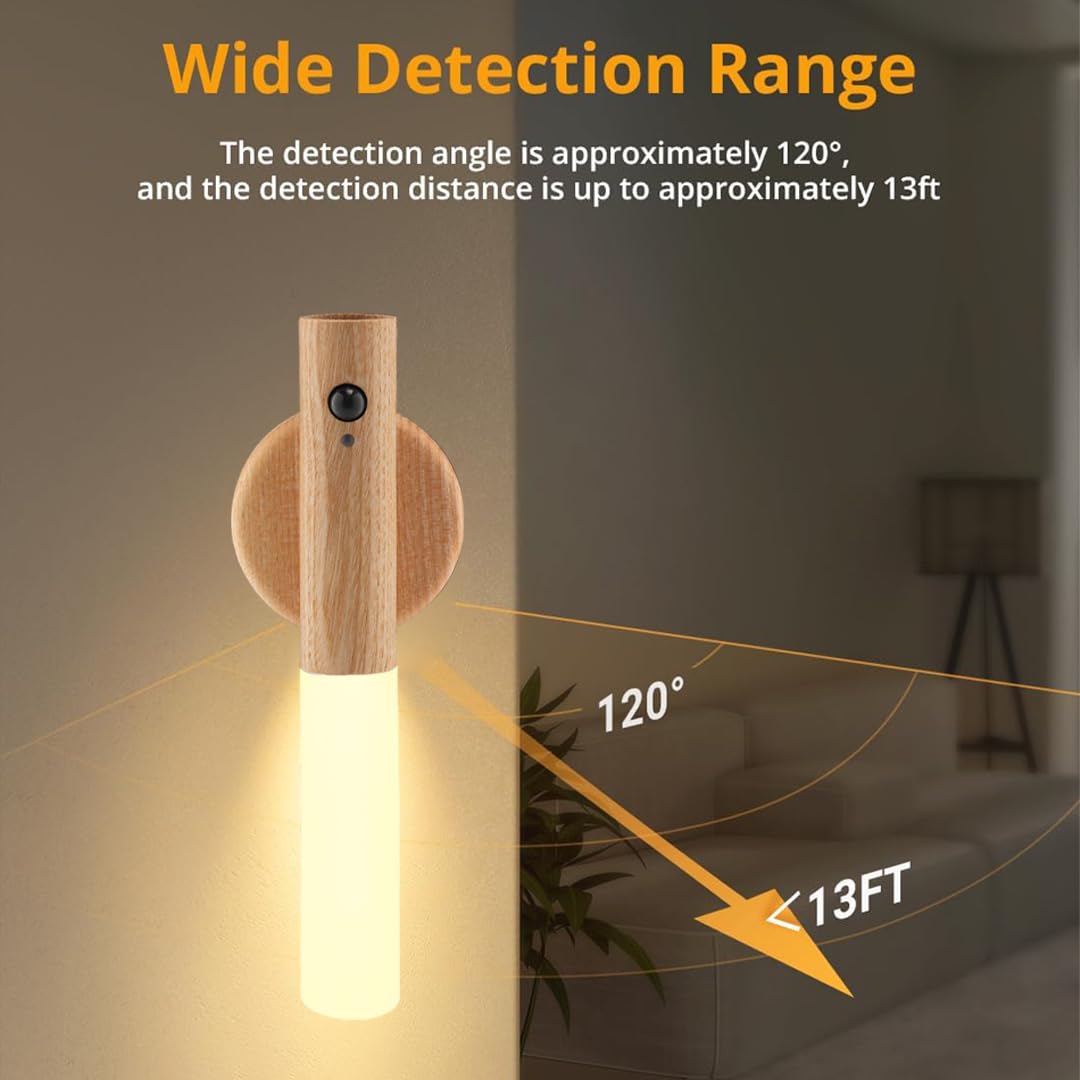 Product Description Material: White Ash Wood+Acrylic / Black Walnut Wood+Acrylic Sensor Detection Distance: 10 ft. Lighting Mode: Motion Detection mode / Alway On mode Battery Capacity: 500mAh lithium battery Light Dimension: 7.1 inch x 1inch / 180mmx25mm Electronic Components Light Source: LED Light Light Power: 1Watt Brightness: 2700K-3000K warm Motion Detection Lighting Duration: 15s (sensor mode) Rated Voltage: DC 5V 1A