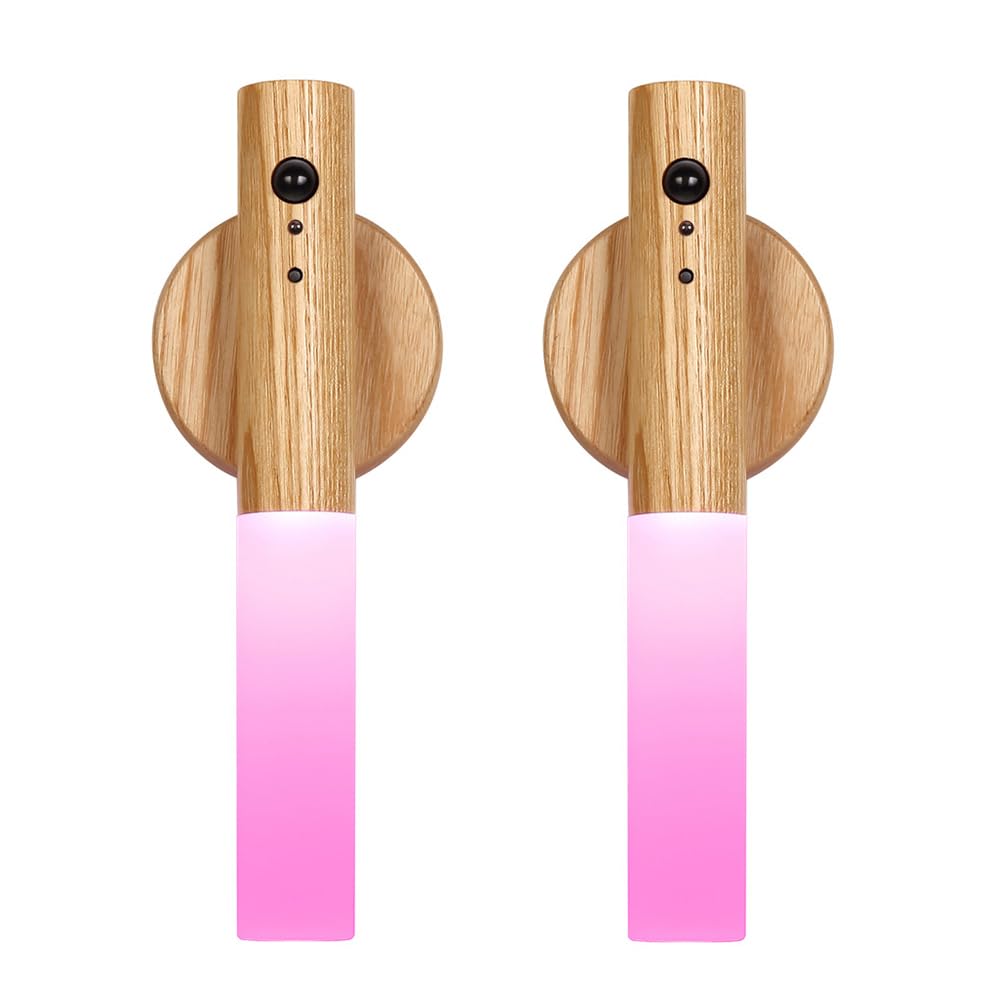 Landgoo Rgb Motion Sensor Night Light, Color Changing Atmosphere Lamp, Battery Powered Rechargeable Led Wood Wall Sconce For Hom