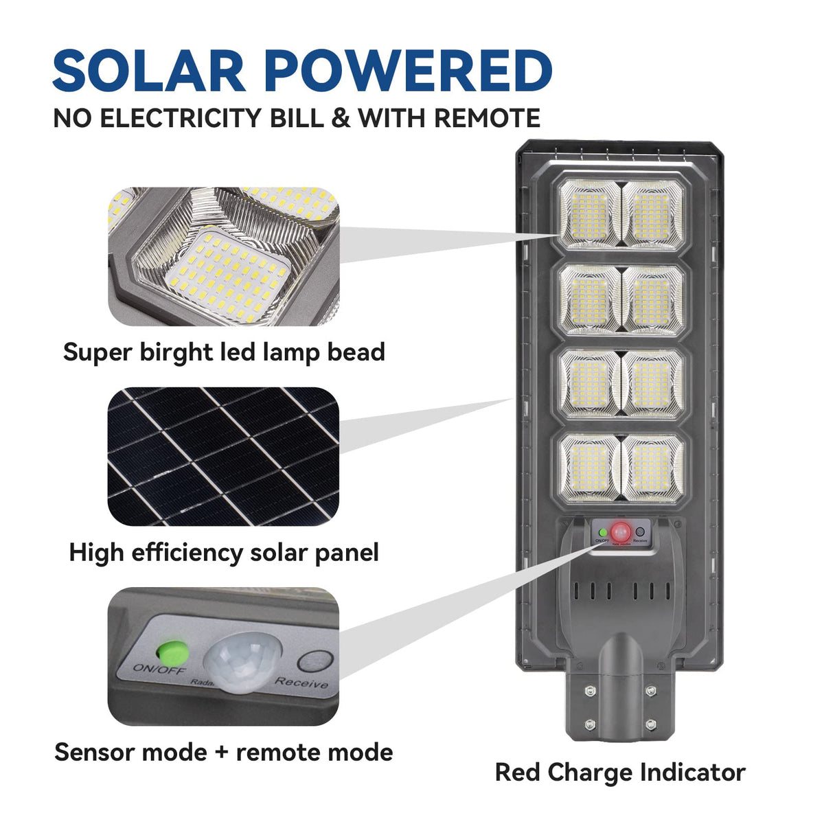 Q: What is the material used in these solar street lights?A: The lights are made from Acrylonitrile Butadiene Styrene (ABS), a durable and lightweight material that enhances the longevity and resilience of the product.