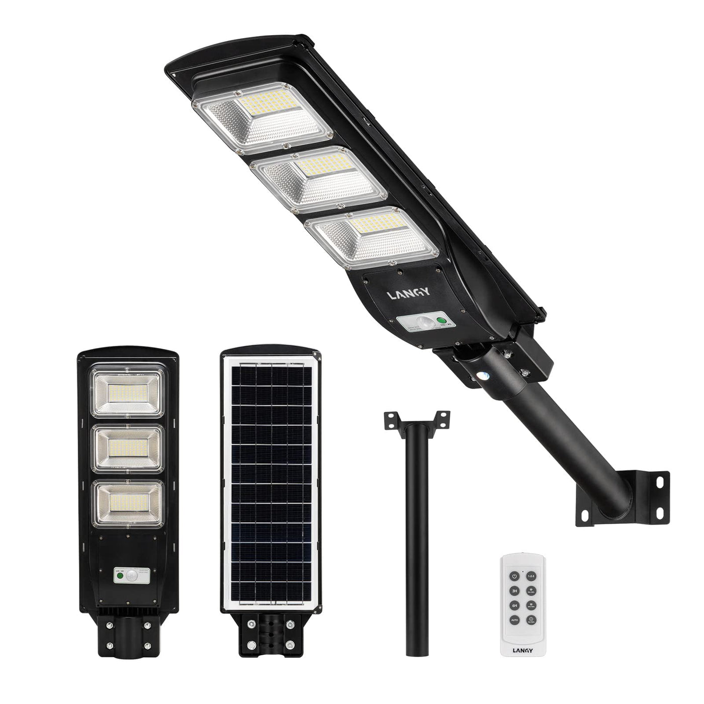 Langy Solar Street Light 9000Lm, 180 Led, 15000Mah, Pir Sensor, Dusk To Dawn,