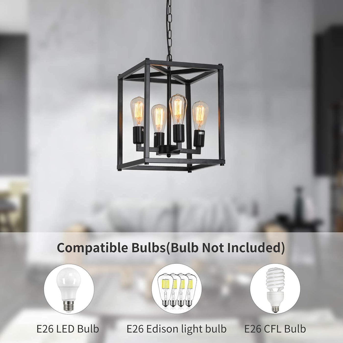 - **Stylish Industrial Design**: With its exquisite black square shadow and geometric beauty, this chandelier serves as a statement piece, enhancing the aesthetic of your kitchen island, dining room, living room, bedroom, or foyer.