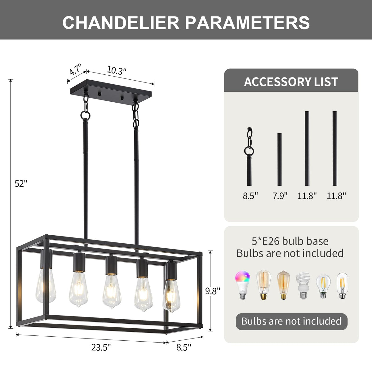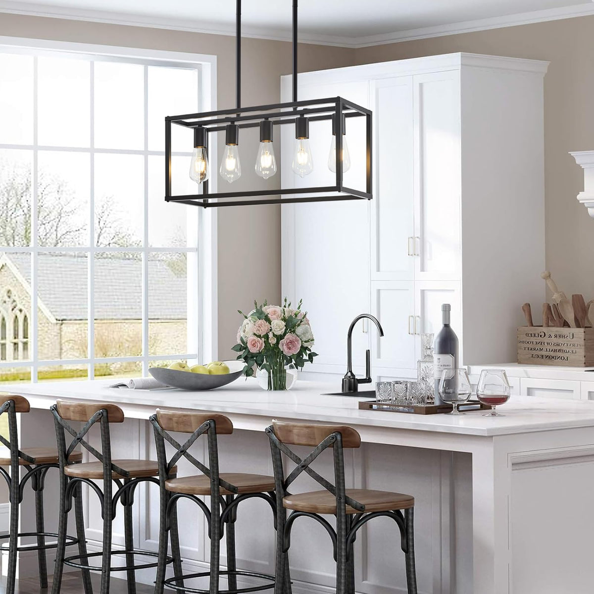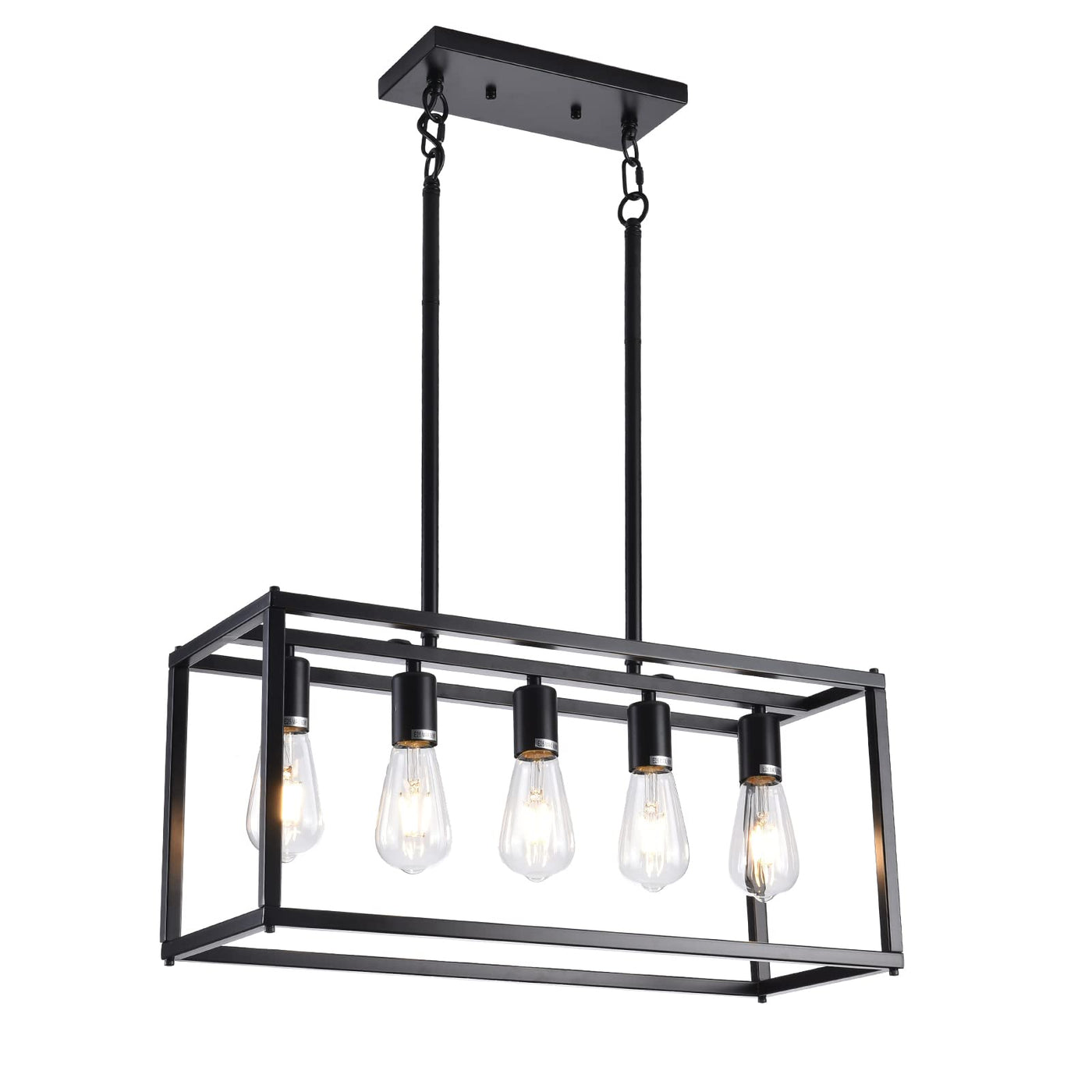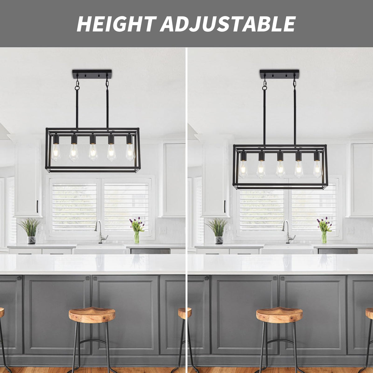 Lanhall 5-Light Black Farmhouse Chandelier Linear Pendant Light Fixture For Kitchen & Dining Room