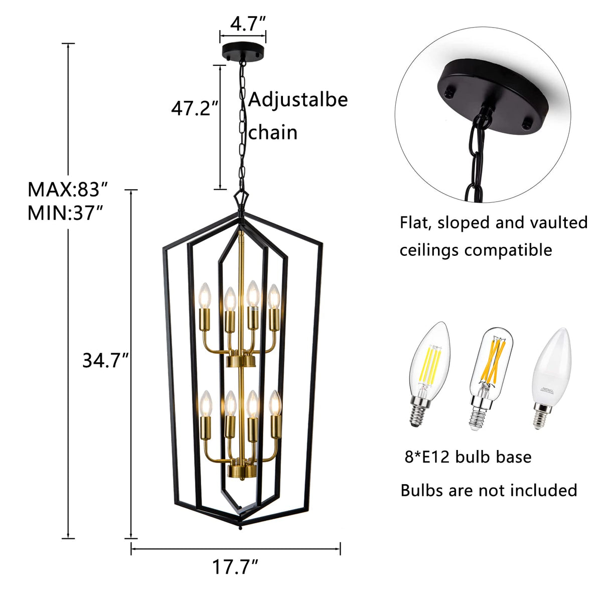 - **8 Light Sockets**: Equipped with 8 E12 sockets, this chandelier supports up to 60W per bulb. Dimmable functionality allows for adjustable lighting when paired with compatible bulbs and dimmer switches (bulbs and switches not included).