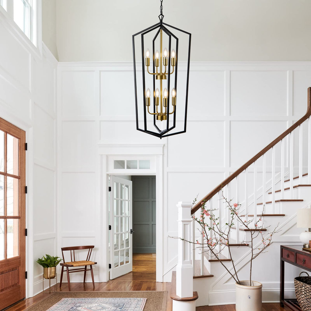 Q: What styles of decor does this chandelier suit?A: The Lanhall 8-Light Lantern Chandelier has a unique rustic yet modern design, making it suitable for various interior styles, including modern, farmhouse, country, and even industrial decor.