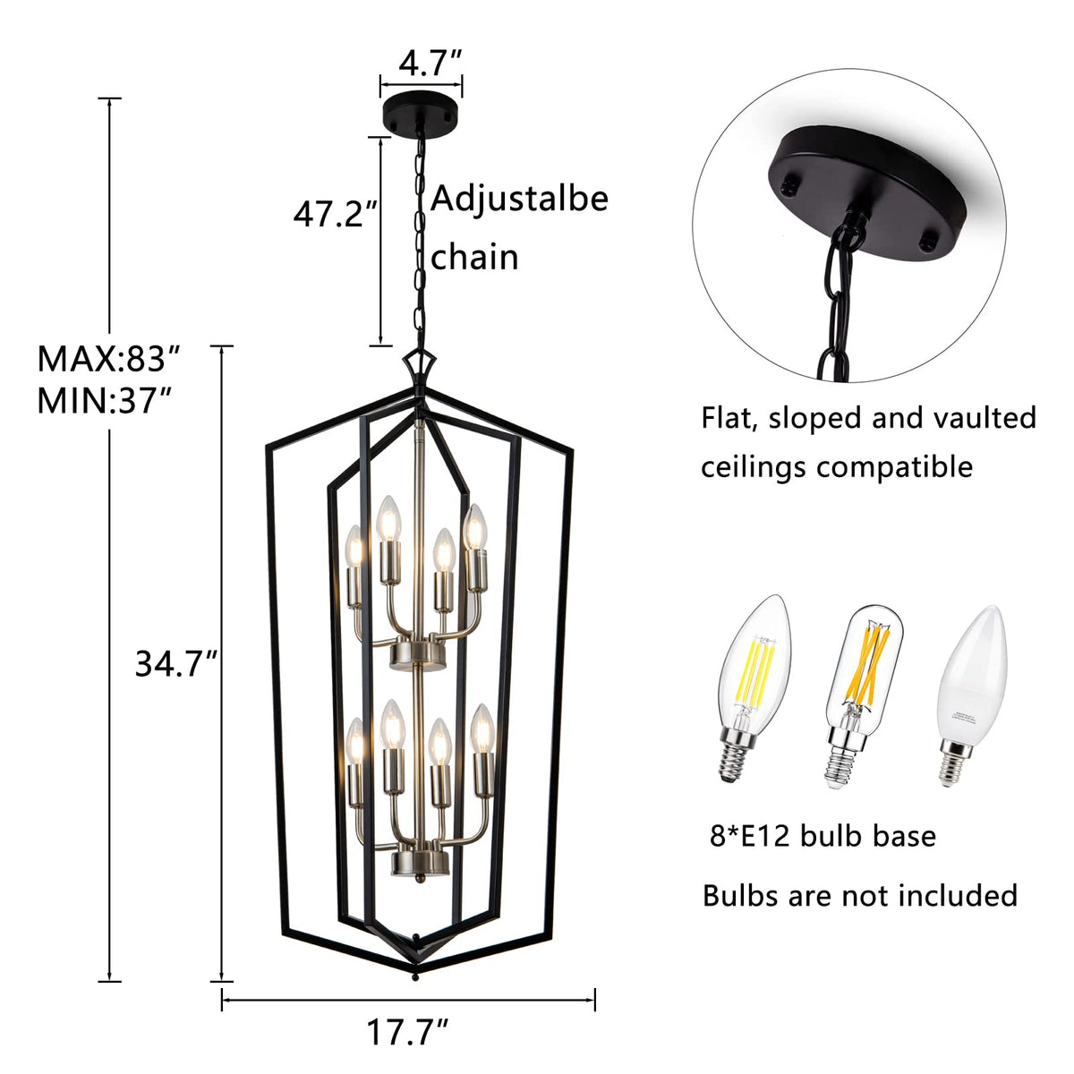 - **Dimmable Compatibility**: This chandelier supports 8 E12 socket bulbs (not included) with a maximum power of 60W each, allowing you to create the desired lighting atmosphere when paired with dimmable bulbs and a dimmer switch.