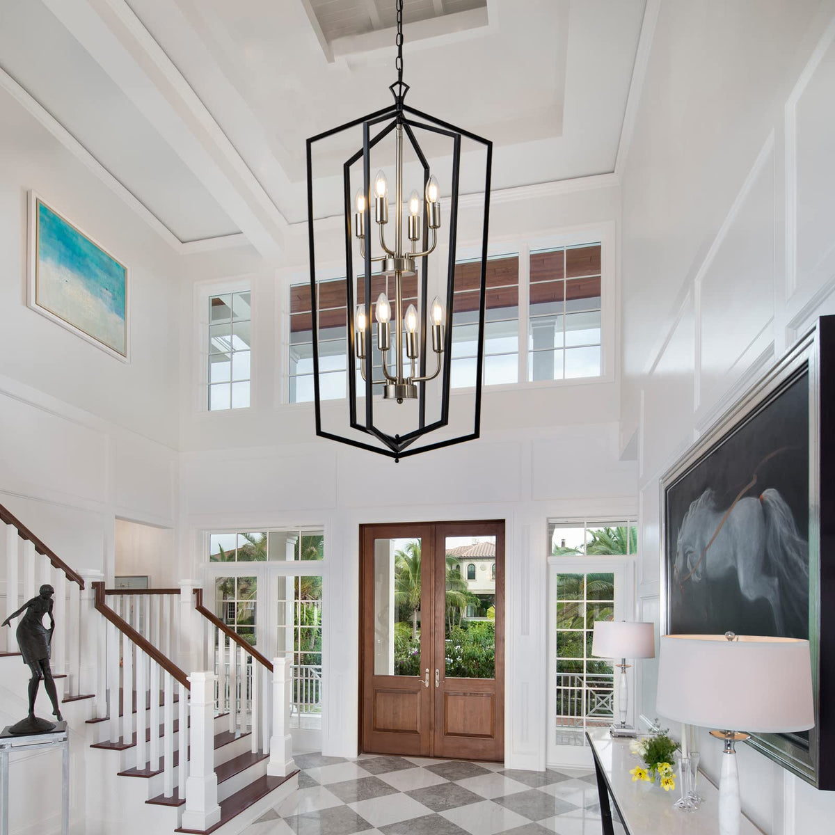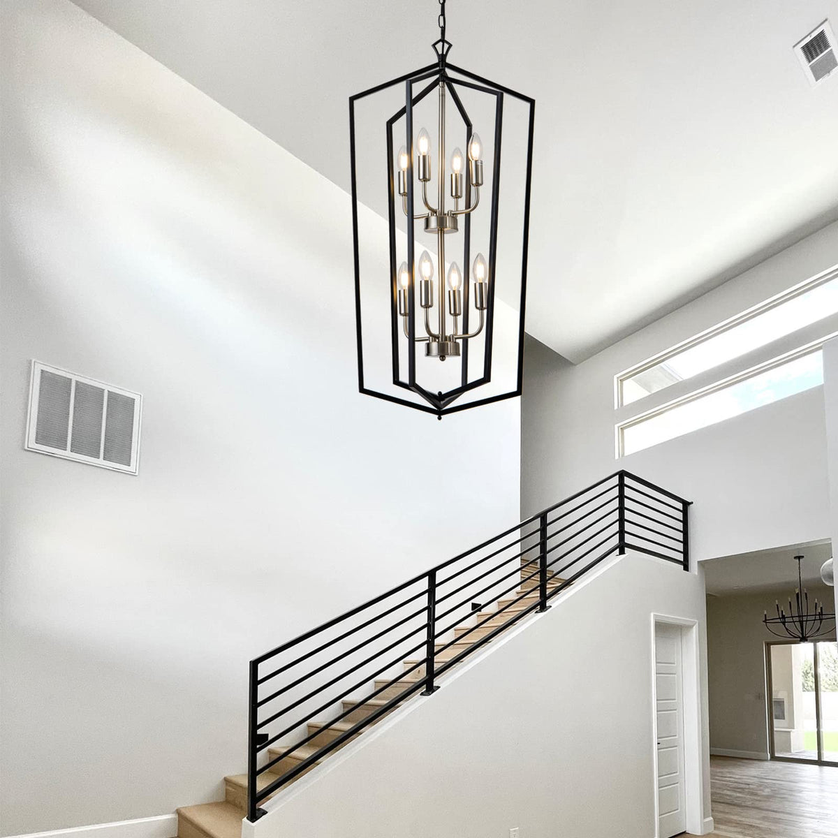 Q: What style of decor does this chandelier complement?A: The Lanhall 8-Light Lantern Chandelier features a unique lantern shape with a matte black and antique brass finish, offering a rustic yet modern vibe. It complements a variety of interior styles, including modern, farmhouse, and country decor, making it a versatile choice for any room.