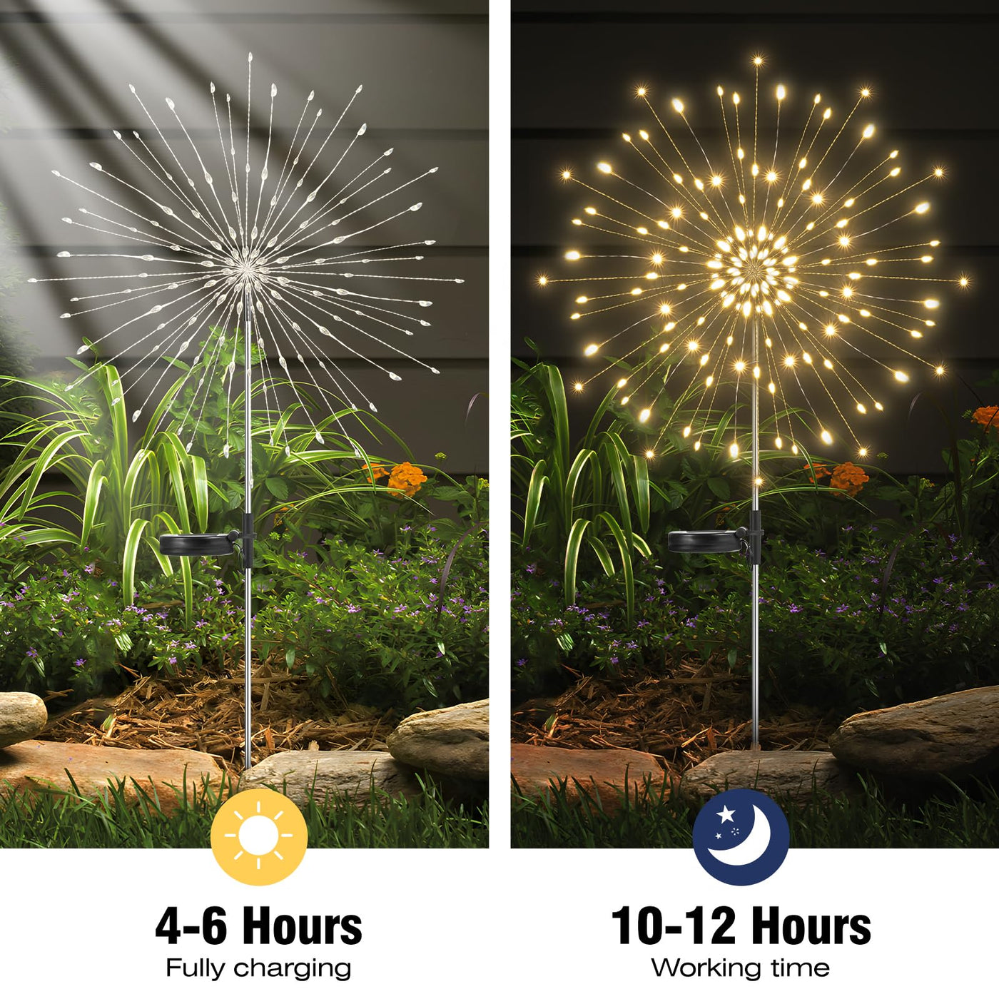 Lanthium 2Pack Garden Decoration Solar Outdoor Light With 240 Leds, Waterproof Solar Firework Lights Modes: Flashing And Stable,