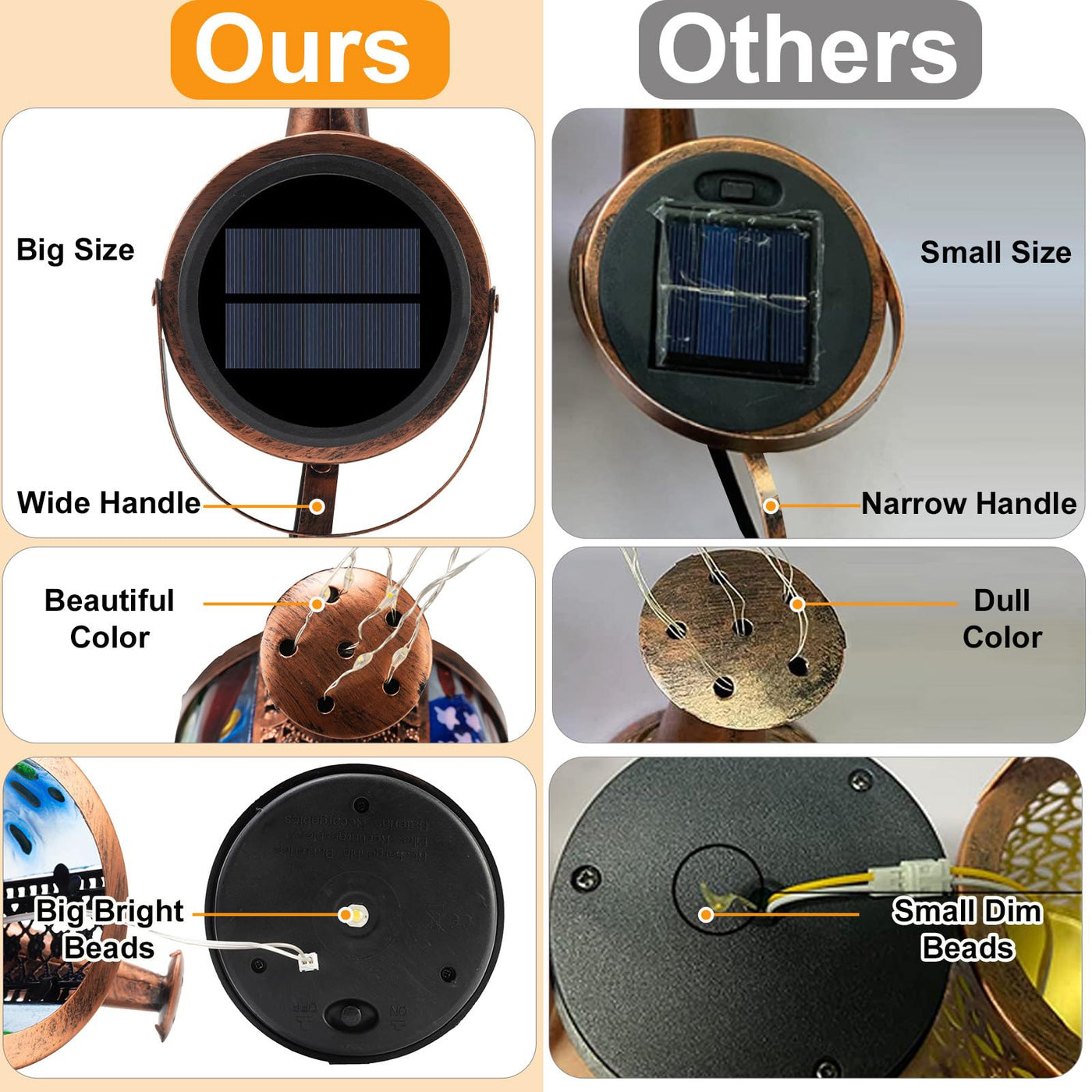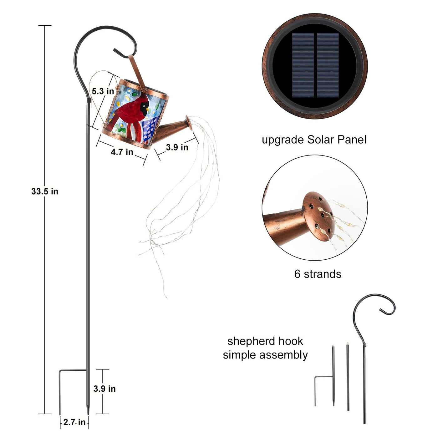 Larekook Solar Outdoor Watering Can Lights Decorative Path Lights, Metal Glass Solar Garden Light Outdoor Waterfall Decor Ornament For Yard Lighting Outside Flag
