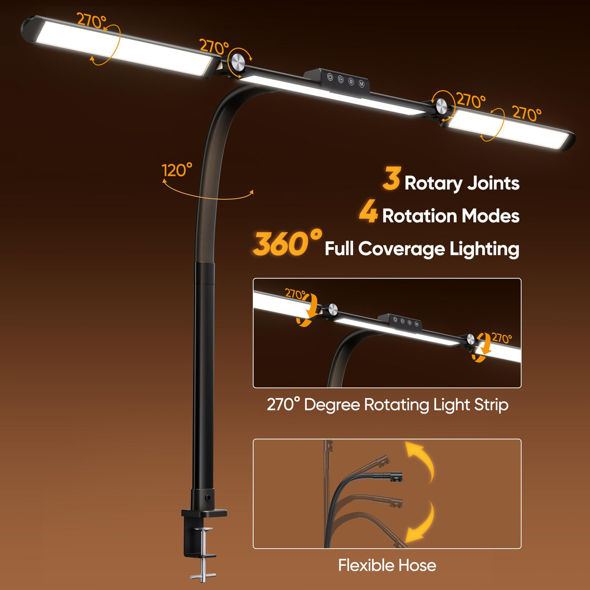 Q: What type of desktops can this lamp be clamped onto?A: The lamp is designed with an adjustable metal clip that can securely clamp onto desktops up to 2.36 inches thick, making it compatible with most work surfaces.