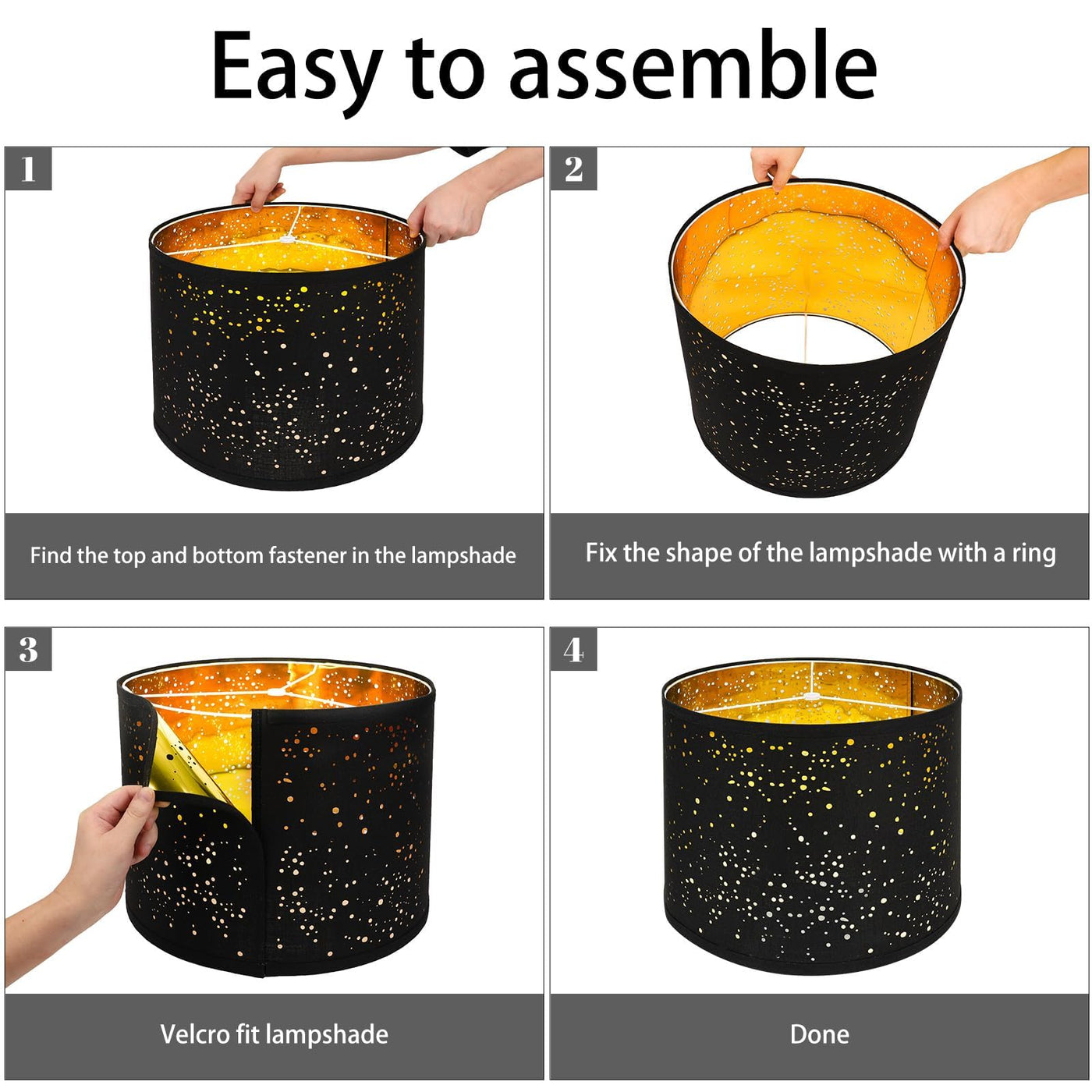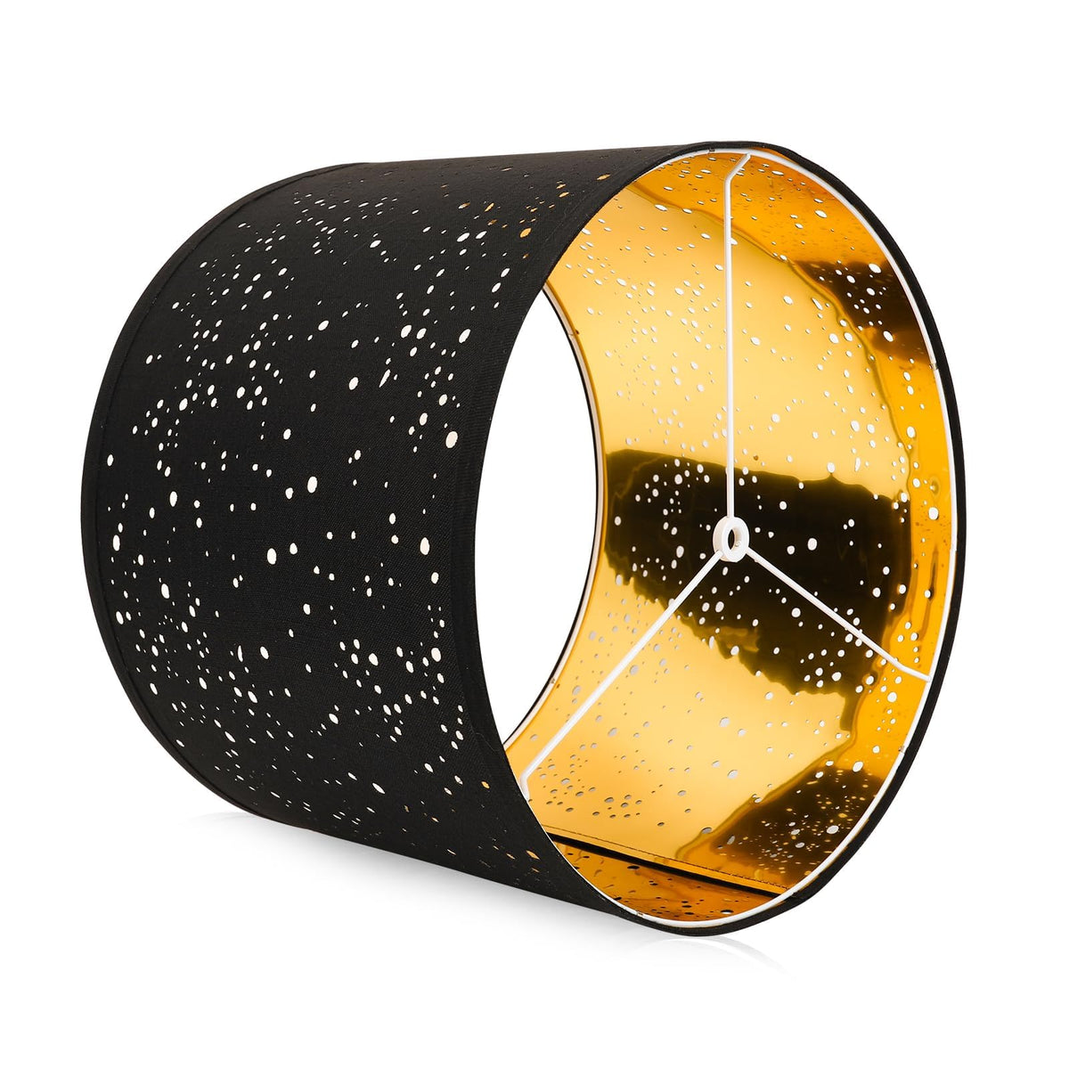 Large Lamp Shades Set Of 2 Starlight Light Effect Drum Lamp Shades 15'' Top X 15'' Bottom X 12'' High, Spider Fitter, Come With 10'' Gold Lamp Shade Holder Set Of 2 Easy Assembly Required Black