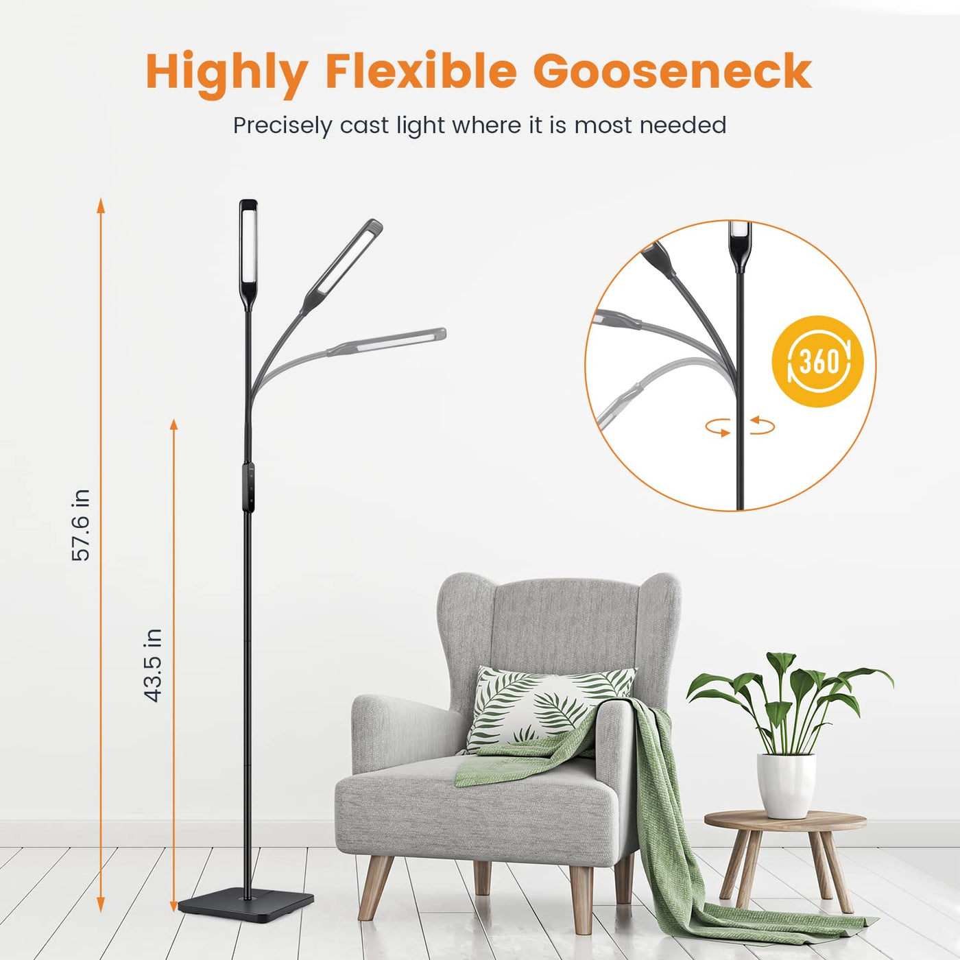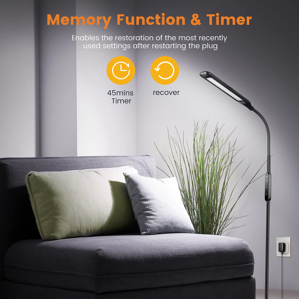 Lastar Led Floor Lamp, Reading Lamp With 3000K-6000K & 4 Brightness Levels, Dimmable Standing Lamps For Living Room, Office With